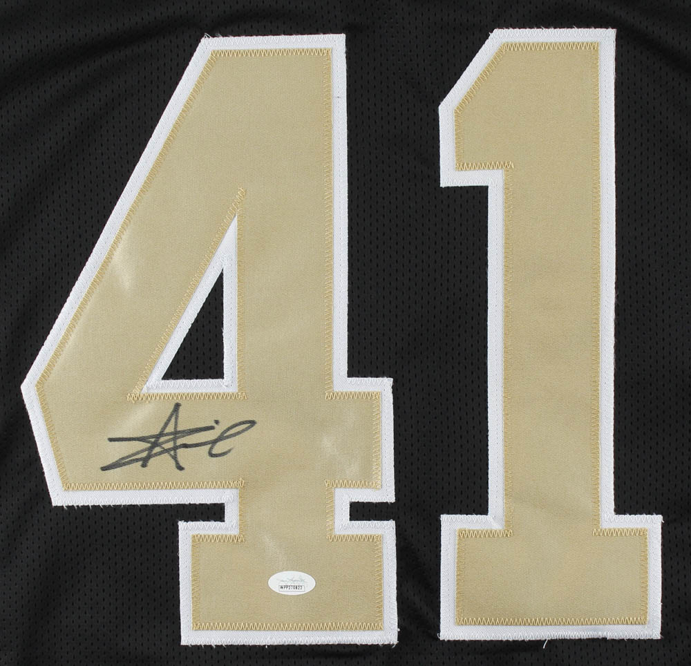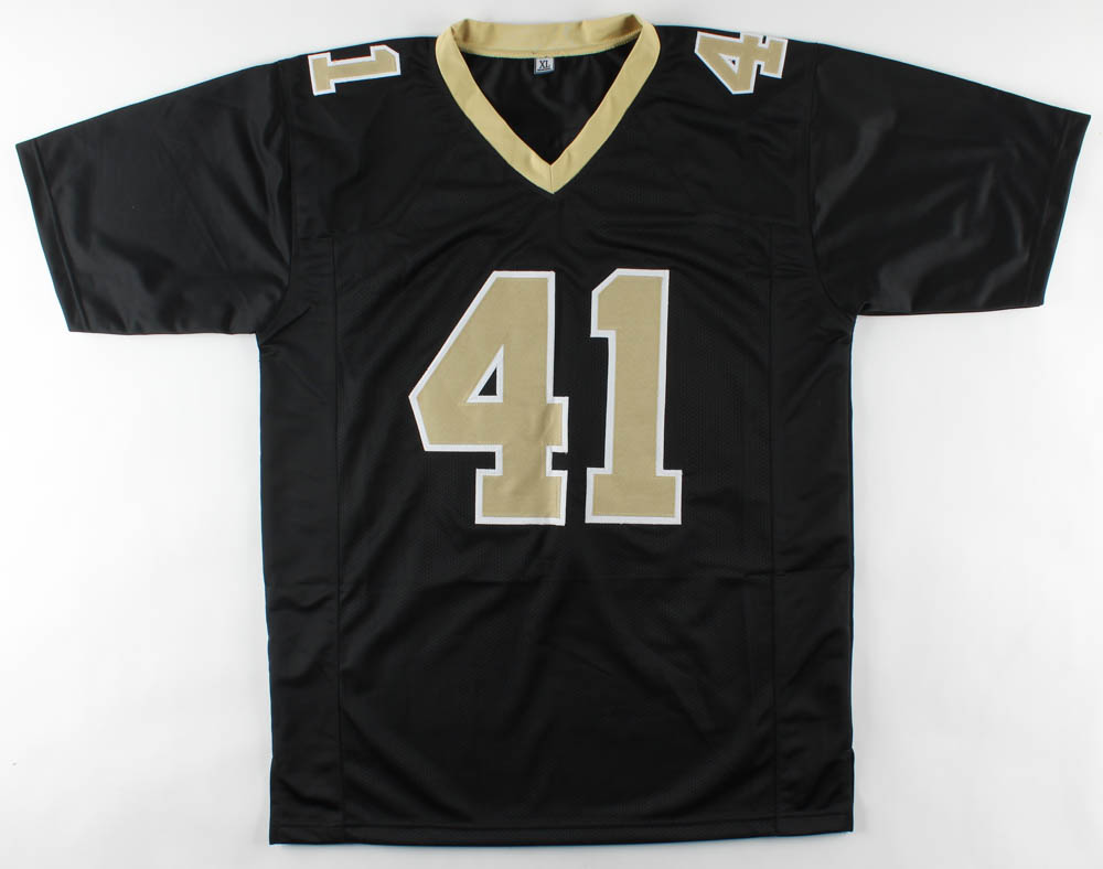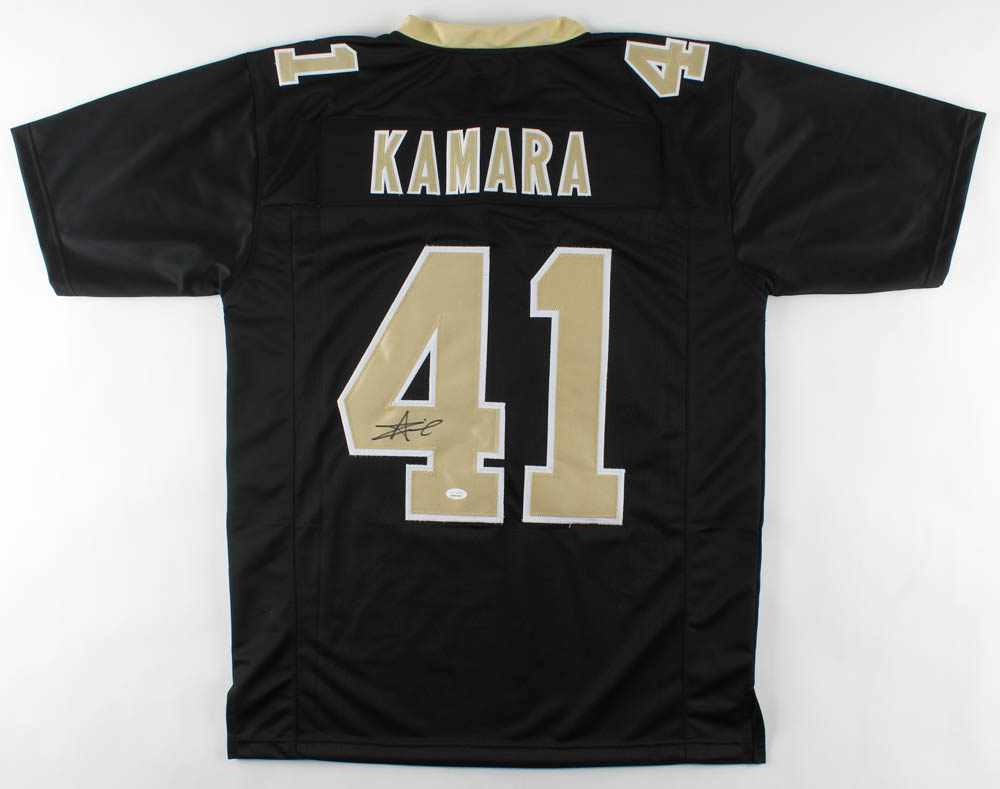 Custom on-field style jersey. Everything is sewn on, size XL. Hand-signed by Alvin Kamara.
