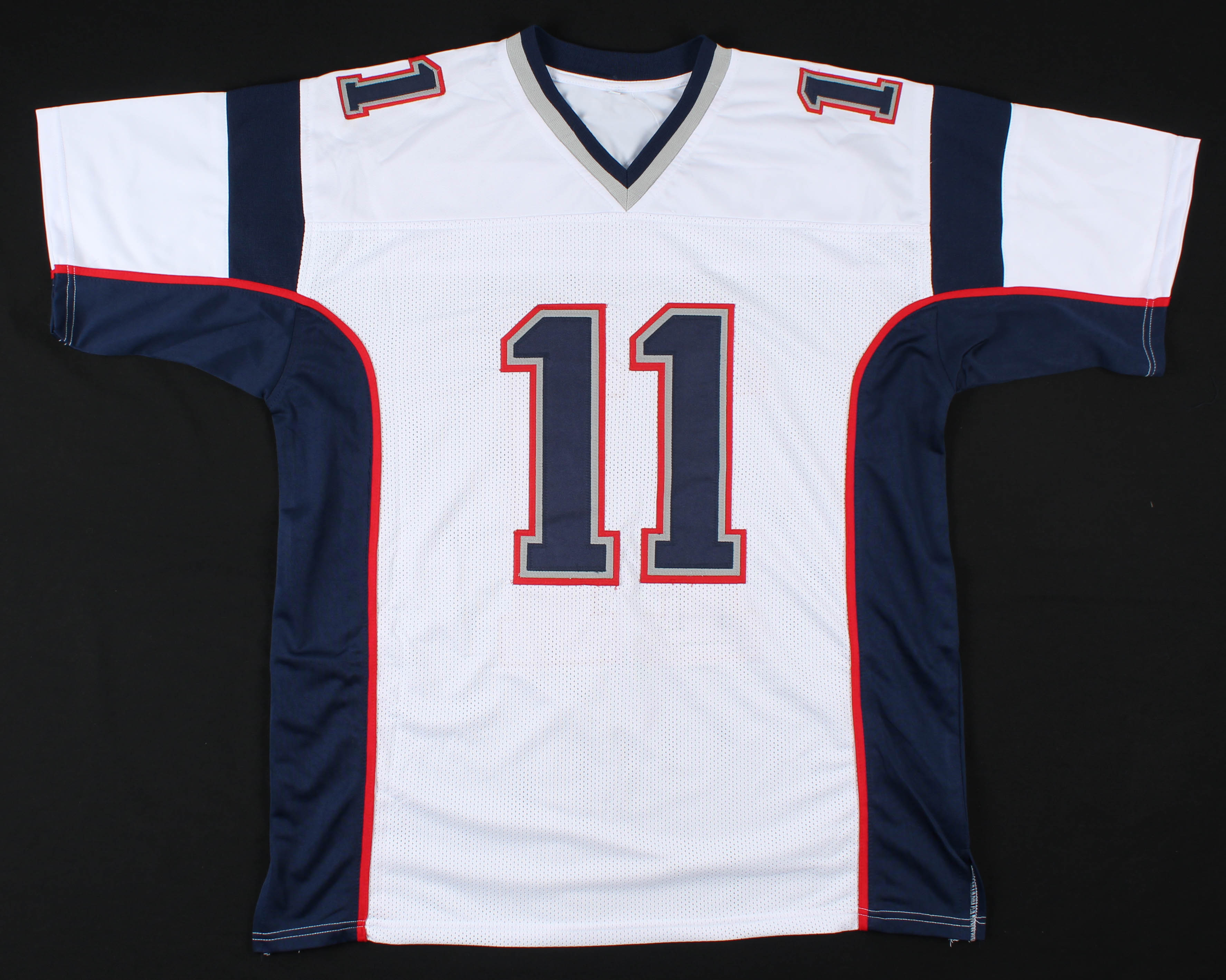 Custom on-field style jersey. Everything is sewn on, size XL. Hand-signed by Julian Edelman.