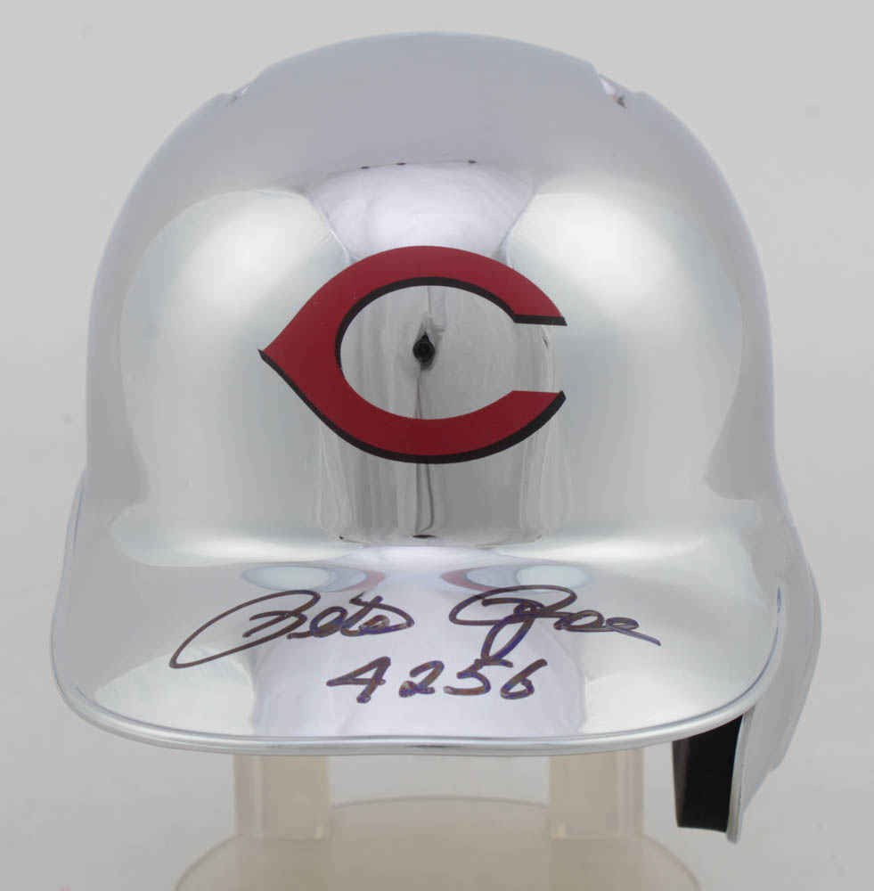 Pete Rose Signed Reds Chrome Mini Batting Helmet Inscribed "4256" (Fiterman Sports Hologram)