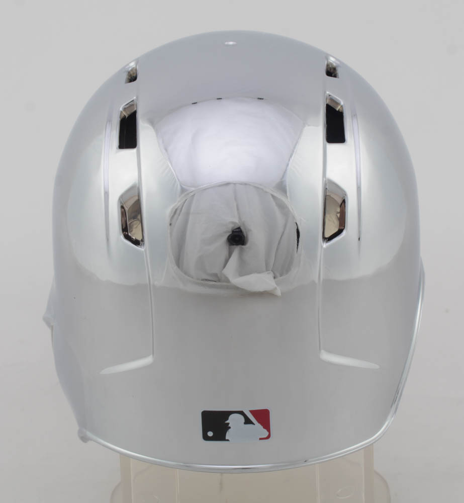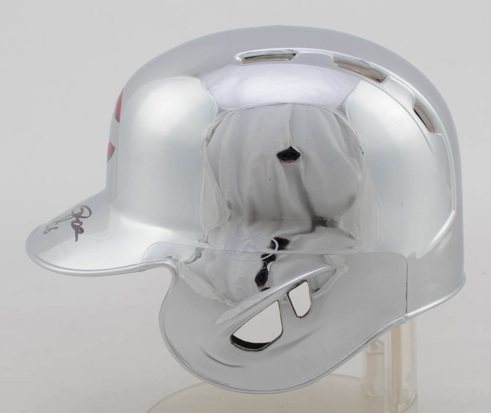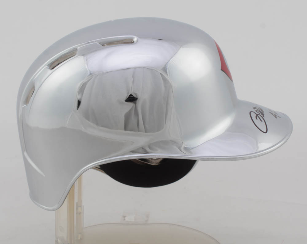 Rawlings Cincinnati Reds chrome mini batting helmet. Hand-signed and inscribed by Pete Rose.