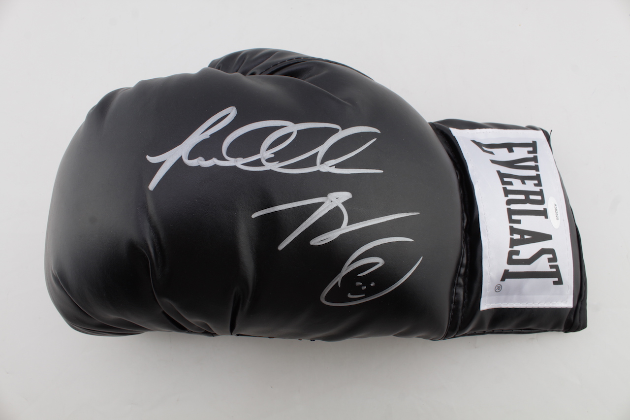 Everlast boxing glove has been hand-signed by Riddick Bowe (HOF).
