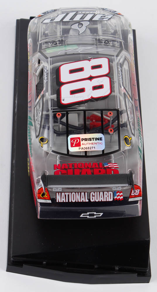 The autograph includes an official Dale Earnhardt Jr. hologram and COA from JR Motorsports for authenticity purposes. Also includes a Pristine Authentic tamper proof hologram and matching COA.
