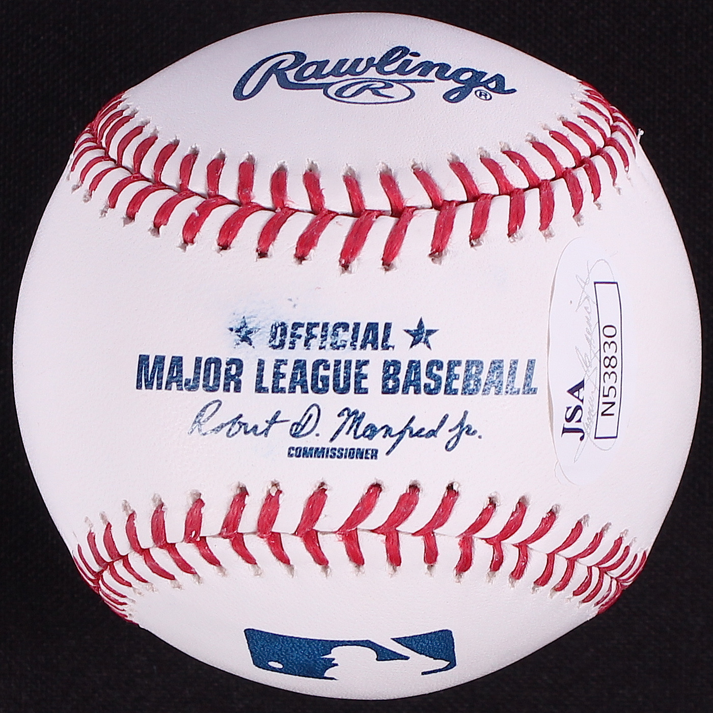 Official Major League Baseball. Hand-signed in blue ink pen by Bob Gibson (Cardinals HOF). The autograph includes an official James Spence Authentication (JSA) hologram and matching COA for authenticity purposes.