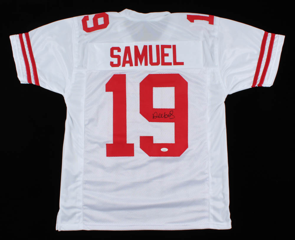 Custom on-field style jersey. Everything is sewn on, size XL. Hand-signed by Deebo Samuel.