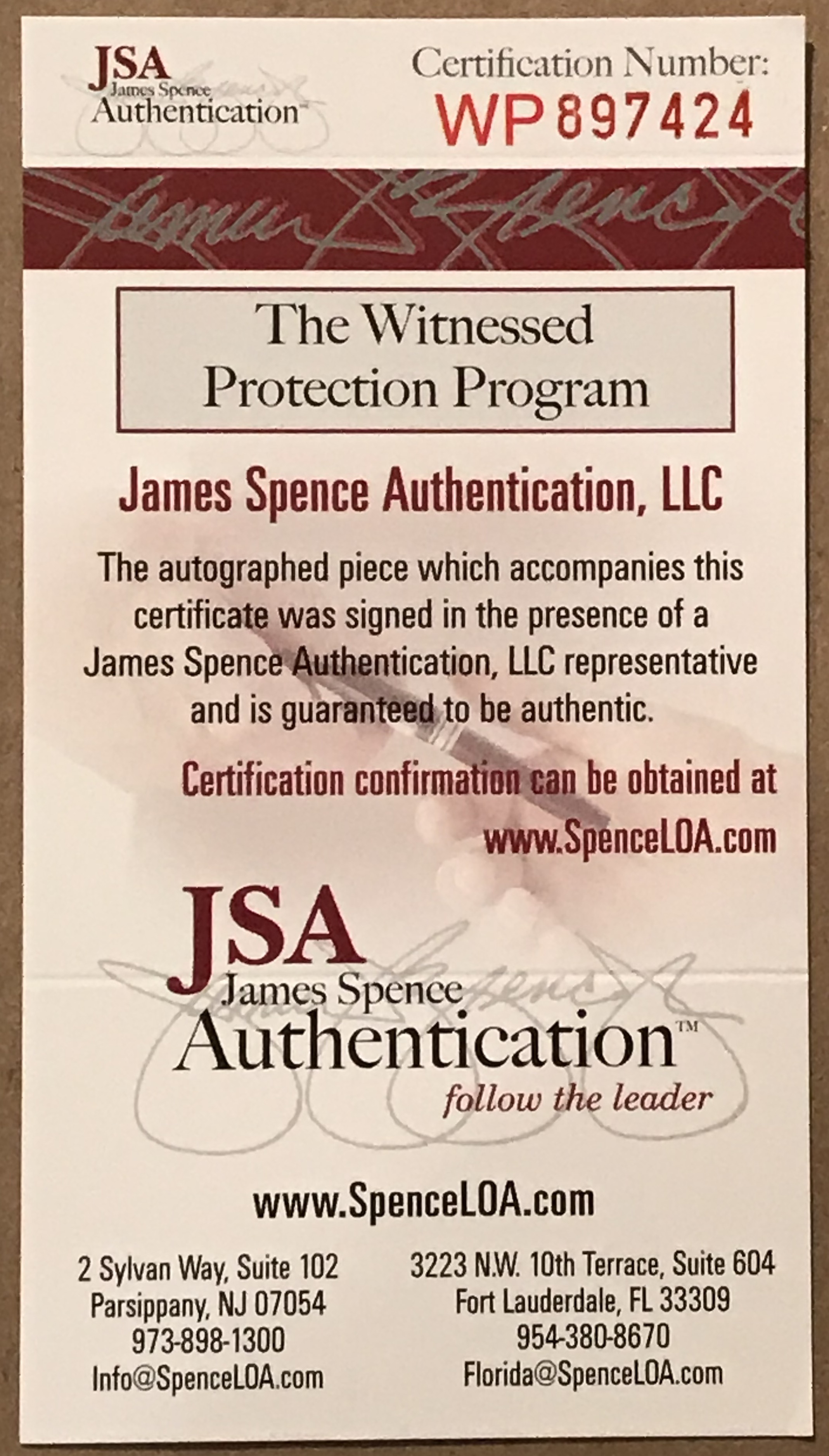 The lot / autograph(s) includes an official James Spence Authentication (JSA) hologram and matching COA for authenticity purposes. The signing of this item was witnessed by JSA.