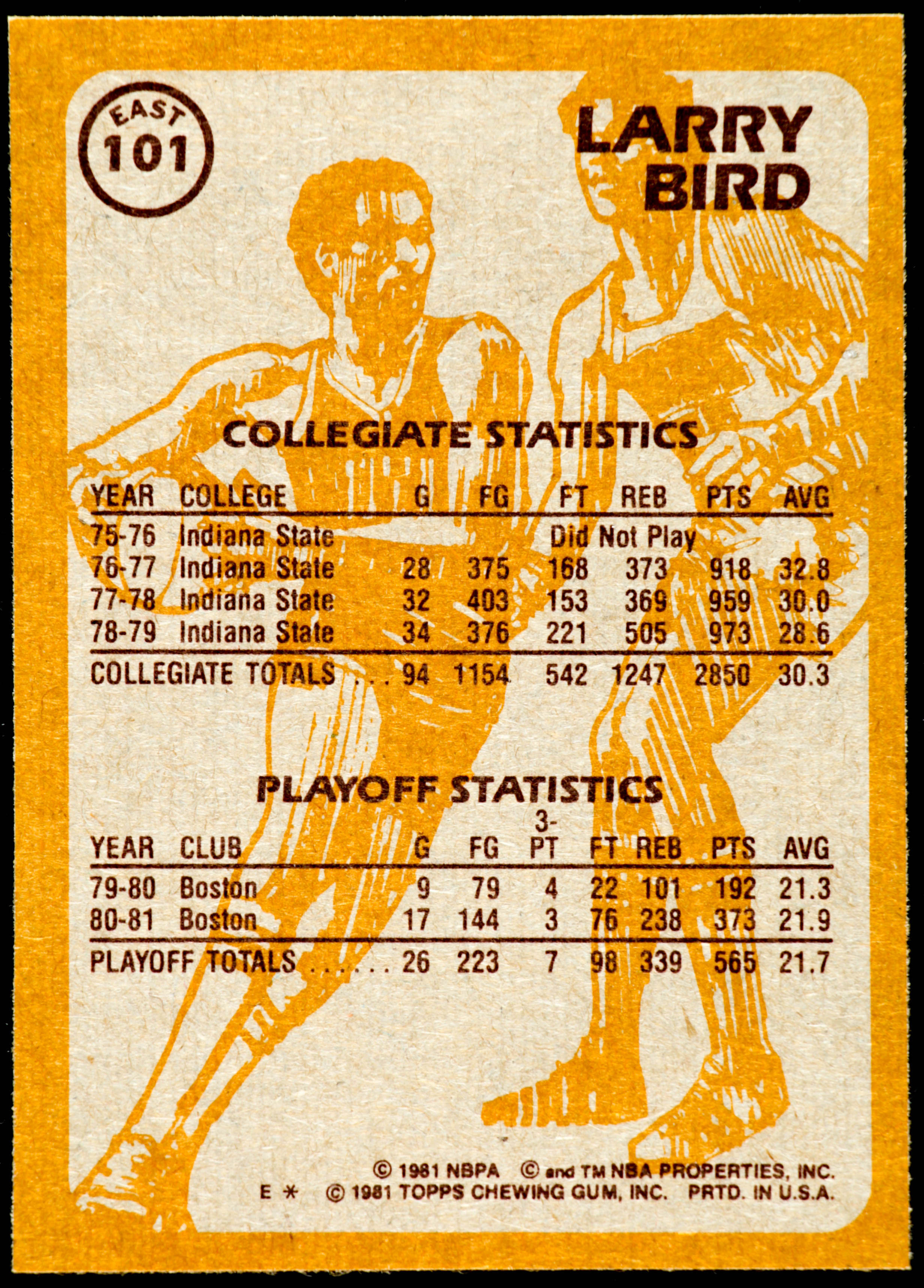 Larry Bird 1981-82 Topps #E101 SA