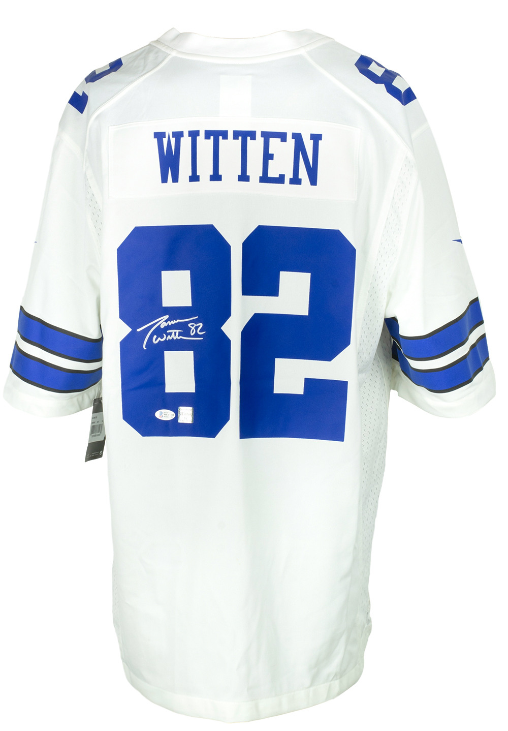 Nike on-field style jersey. Everything is printed on, size XL. Hand-signed by Jason Witten (Dallas Cowboys).