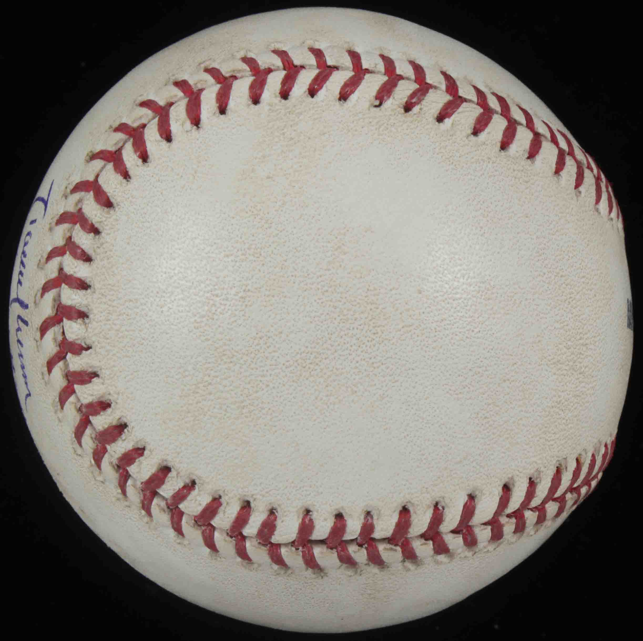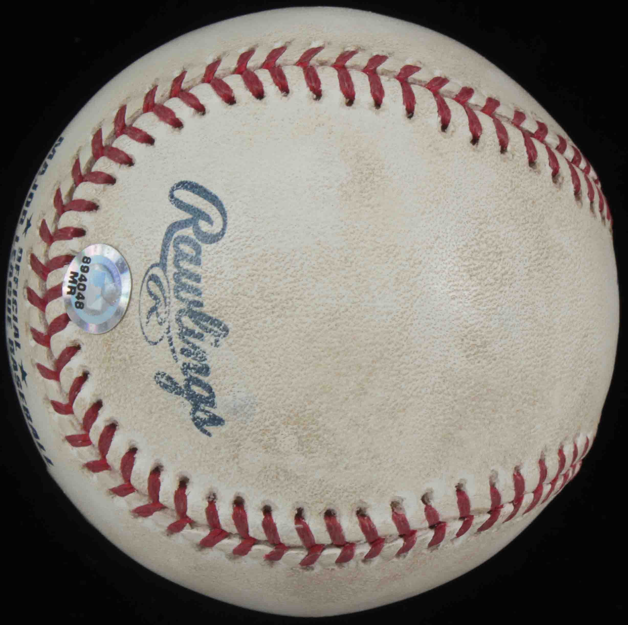 This baseball was game used on May 27, 2005 in a New York Yankees win over the Boston Red Sox at the Yankees stadium.