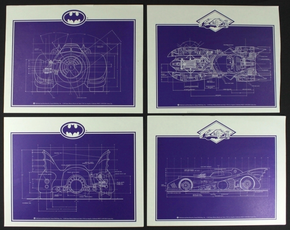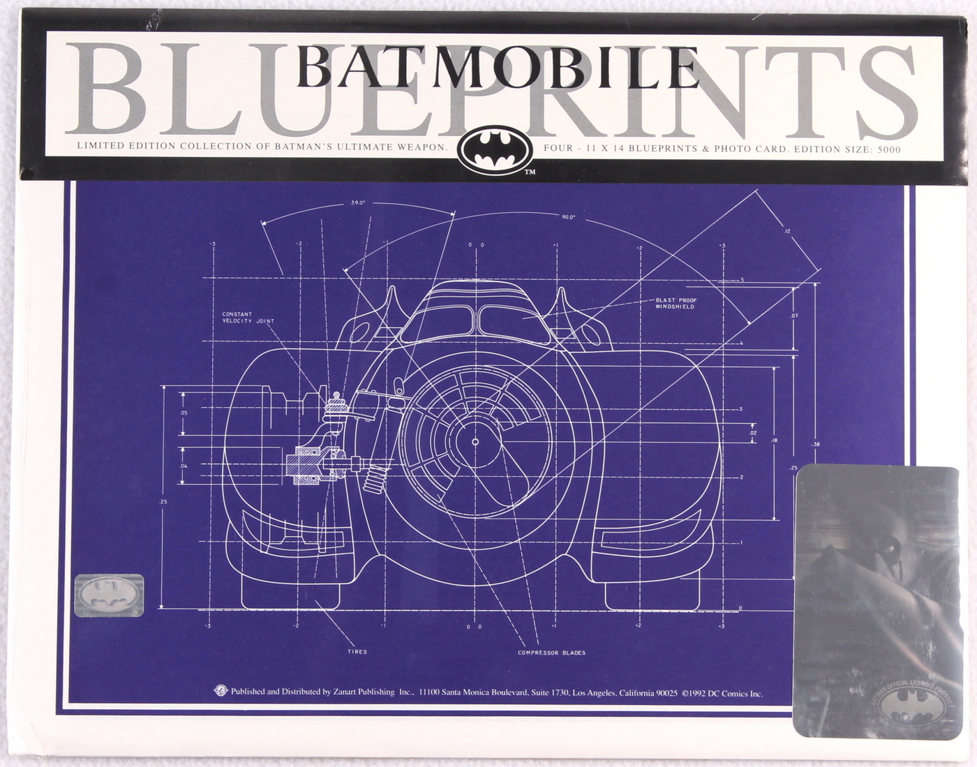 Lot includes a complete set of (4) Batman Batmobile 11" x 14" Zanart blueprint lithographs. This is a limited edition set, still wrapped in the original plastic. The set includes an official Batmobile LOA and an official Batman hologram for authenticity purposes.