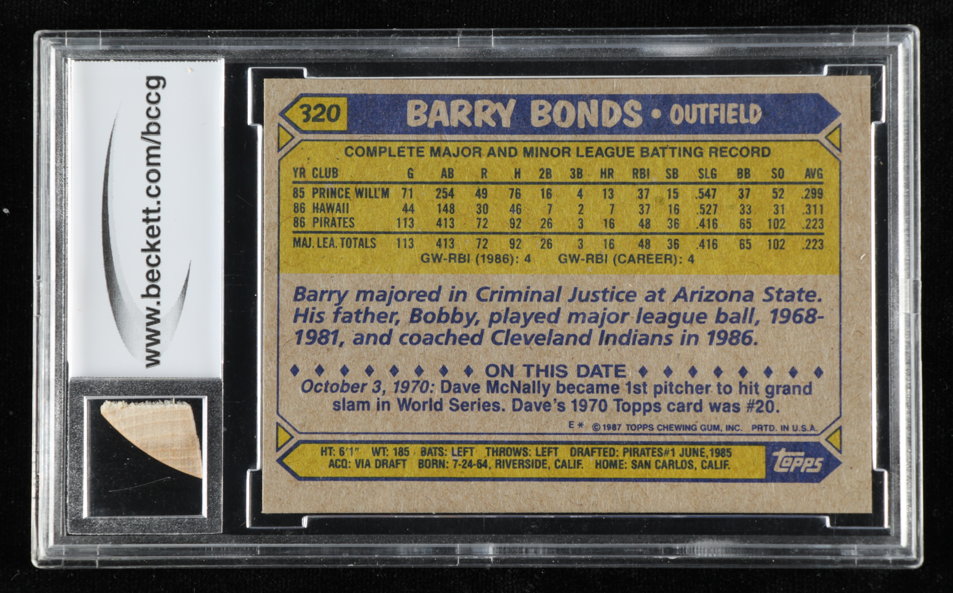 Barry Bonds 1987 Topps #320 RC With Game Used Bat (BCCG 9)