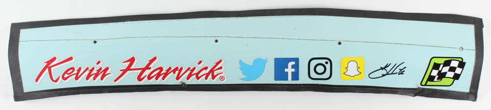 This race-used sheet metal piece measures approximately 5" x 29" in size and is hand-signed by Kevin Harvick. The piece comes directly from Kevin Harvick's car raced in a NASCAR event.