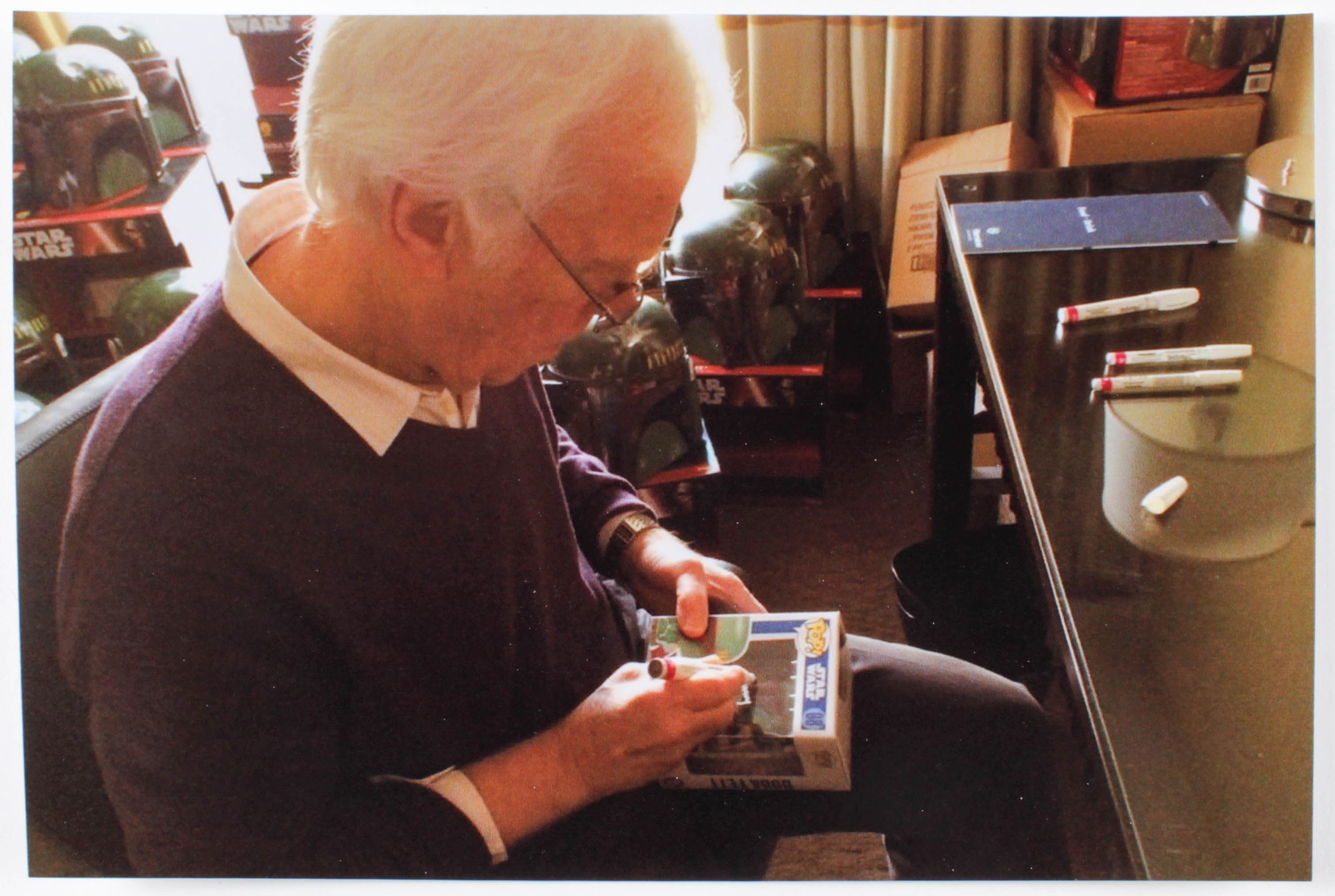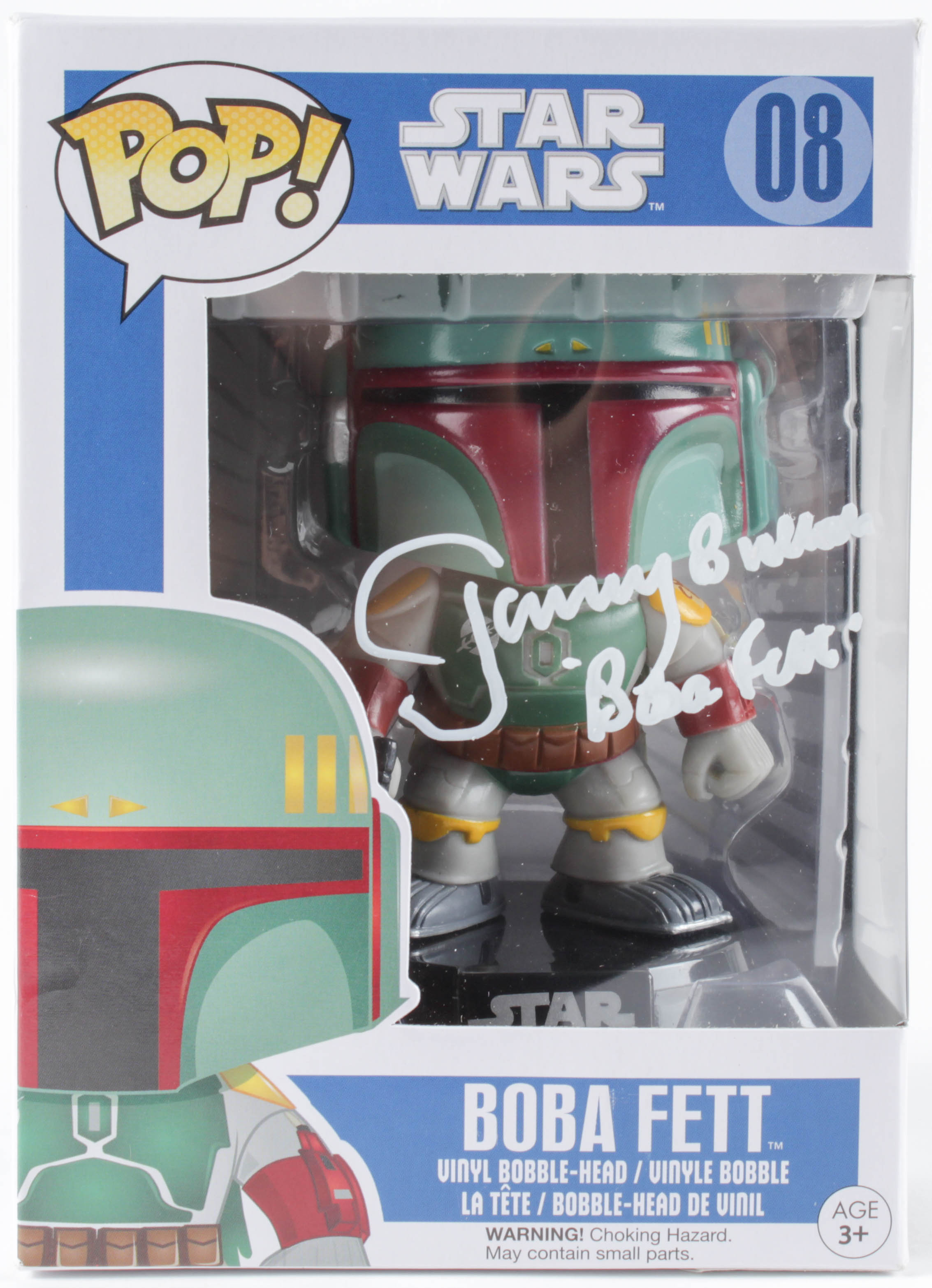 Funko Pop! vinyl figure measures approximately 4" tall and has been hand-signed and inscribed on the packaging by Jeremy Bulloch (D. 2020). Please see photos for more details.