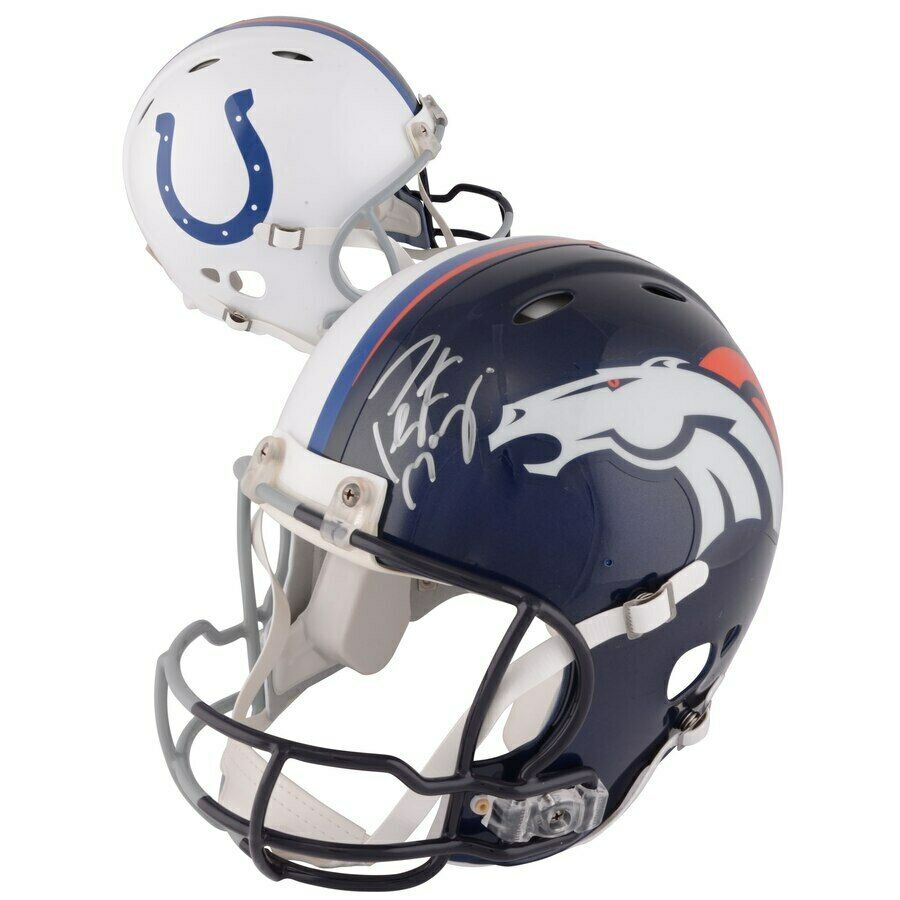 Riddell Denver Broncos / Indianapolis Colts Revolution full-size authentic on-field helmet. Hand-signed by Peyton Manning.