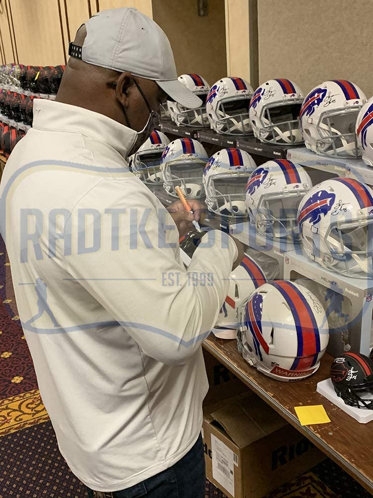 Riddell Buffalo Bills full-size authentic on-field SpeedFlex helmet. Hand-signed by Thurman Thomas (HOF).
