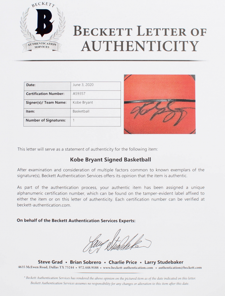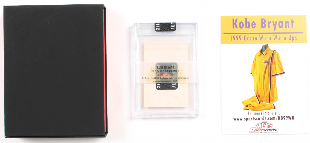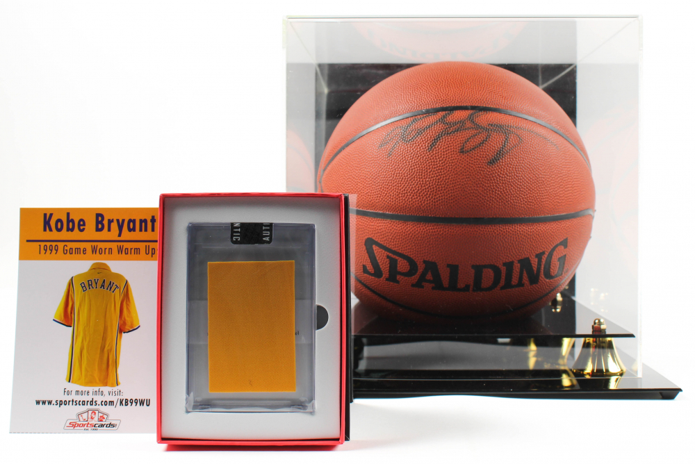 Lot includes both items shown. Spalding Official All-Surface NBA basketball has been hand-signed by Kobe Bryant (D. 2020, Los Angeles Lakers, HOF). Display case is included as shown. Lot also includes a 1999 Game Worn Warm Ups Piece. Please see photos regarding the condition of the items.