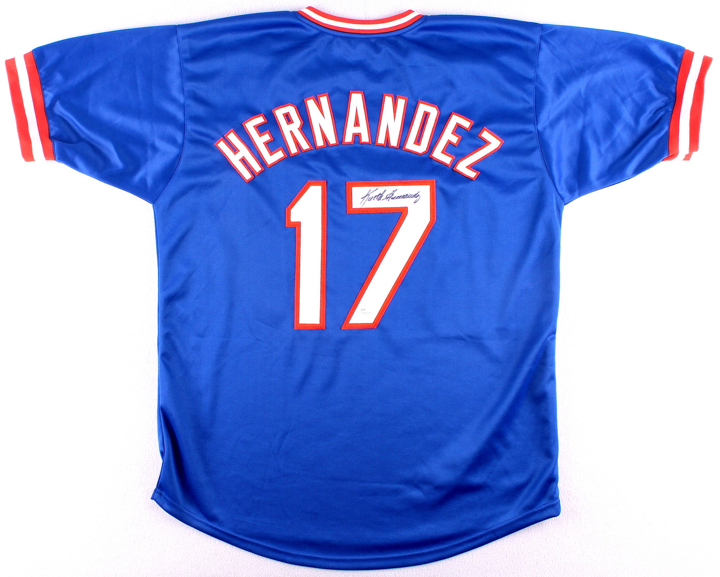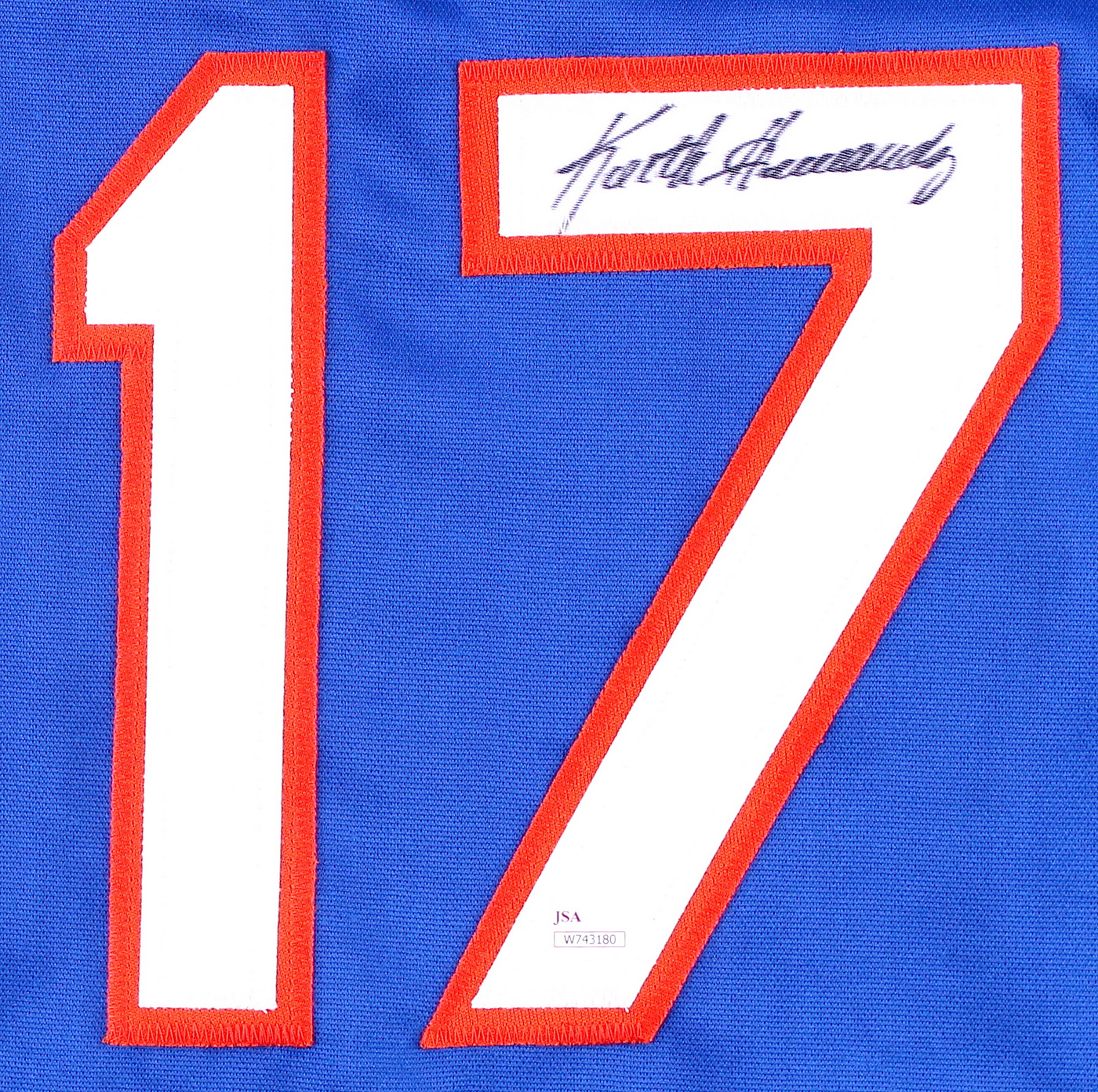 Custom on-field style jersey. Everything is sewn on, size XL. Hand-signed in black felt tip pen by Keith Hernandez. The autograph includes an official James Spence Authentication (JSA) hologram and matching COA for authenticity purposes. The signing of this item was witnessed by JSA.
