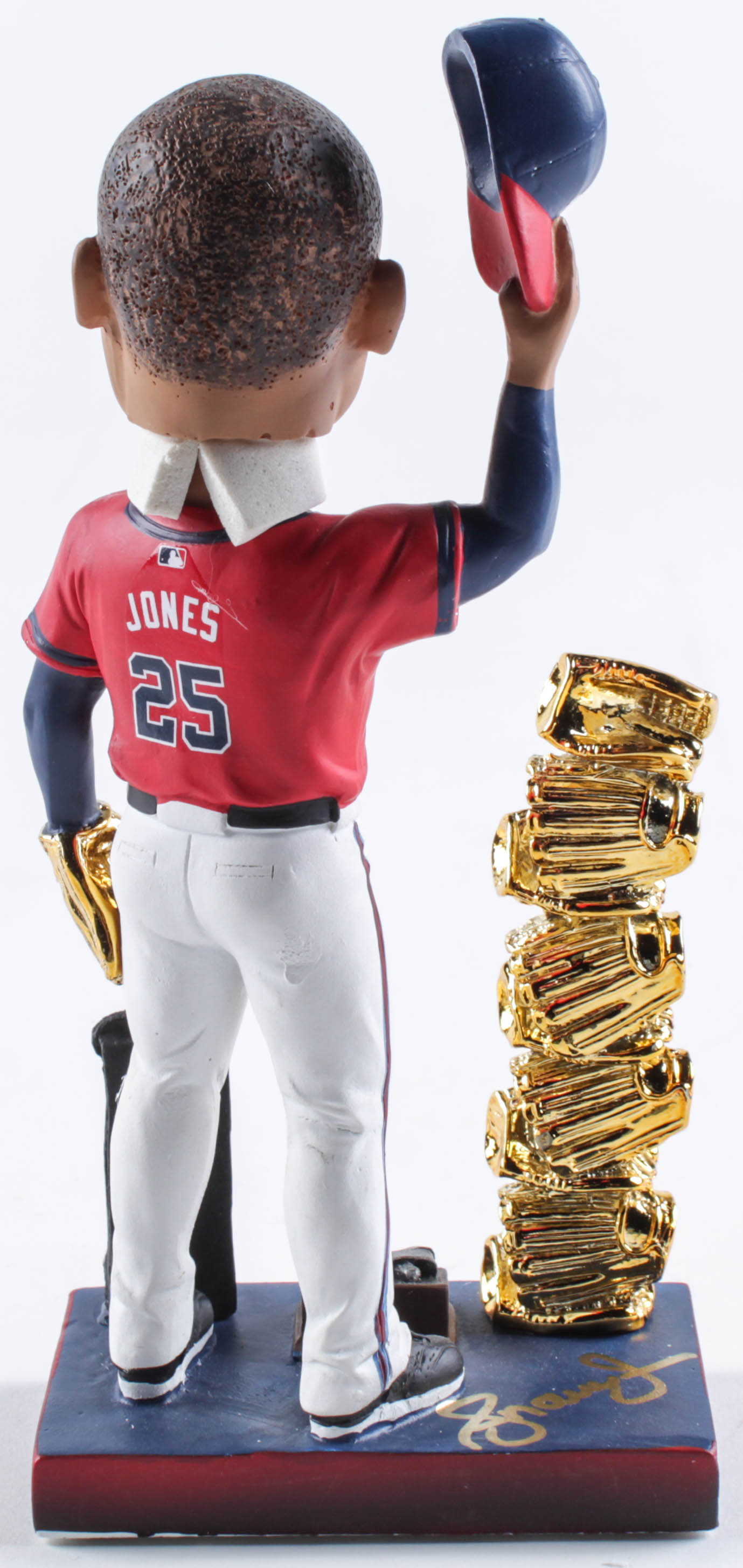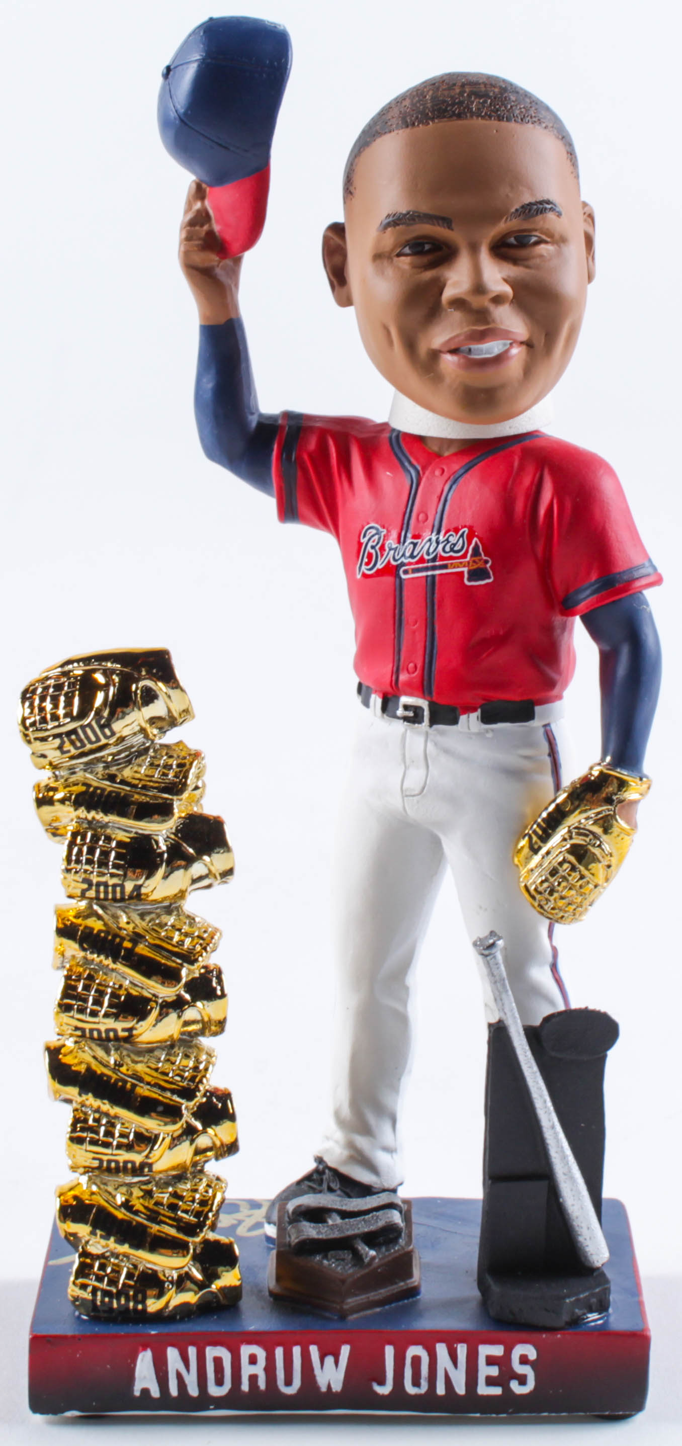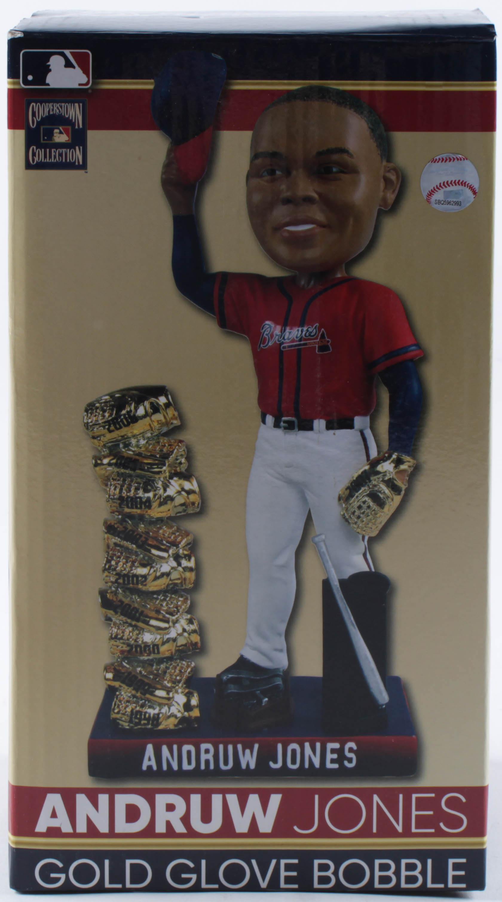 Cooperstown Collection Atlanta Braves Gold Glove bobblehead measures approximately 7" tall. Hand-signed by Andruw Jones.