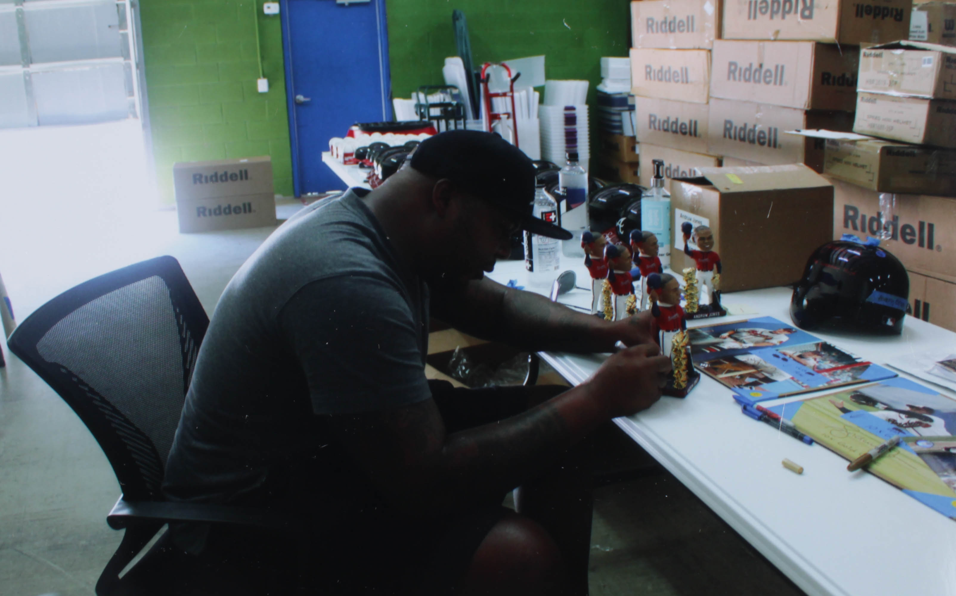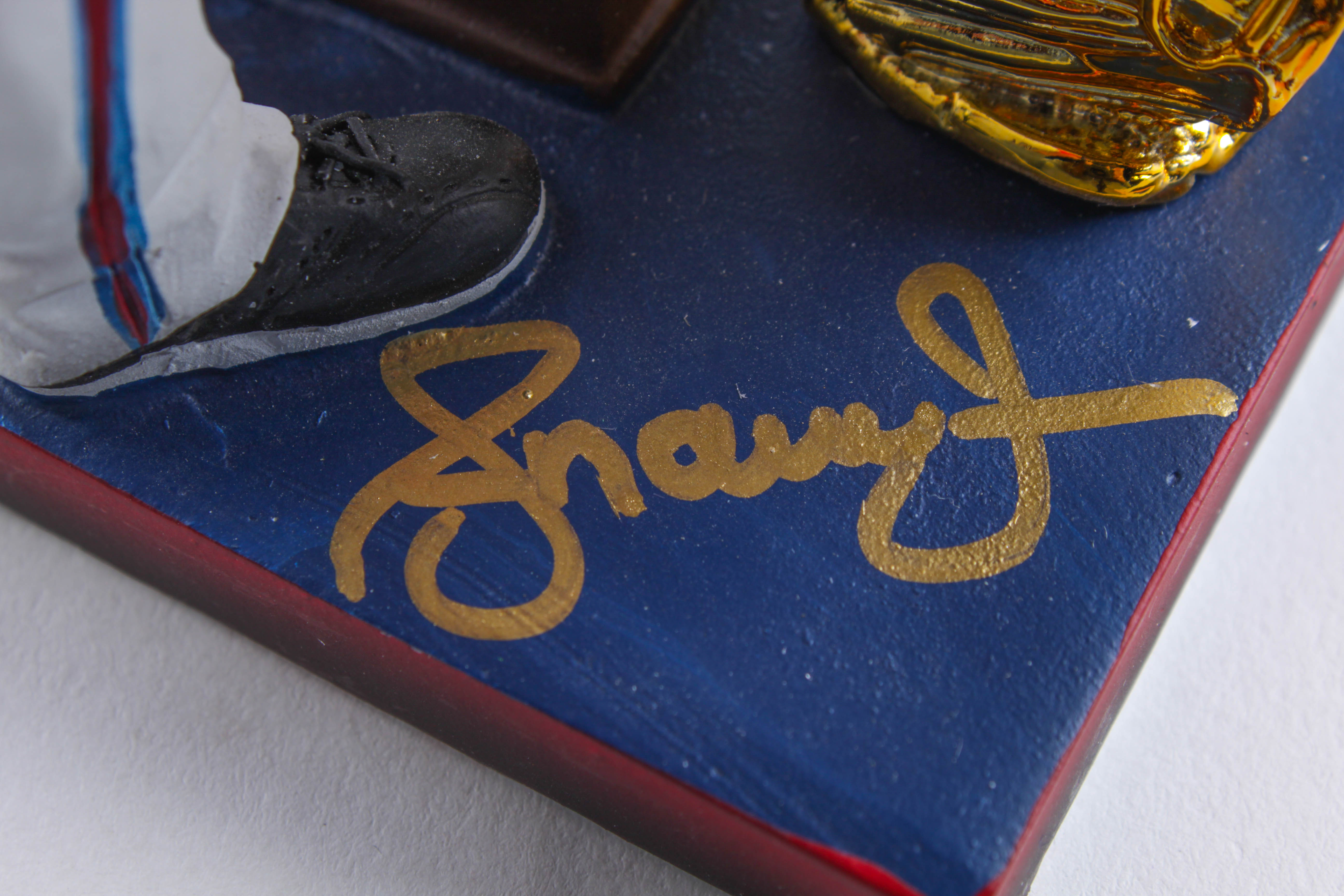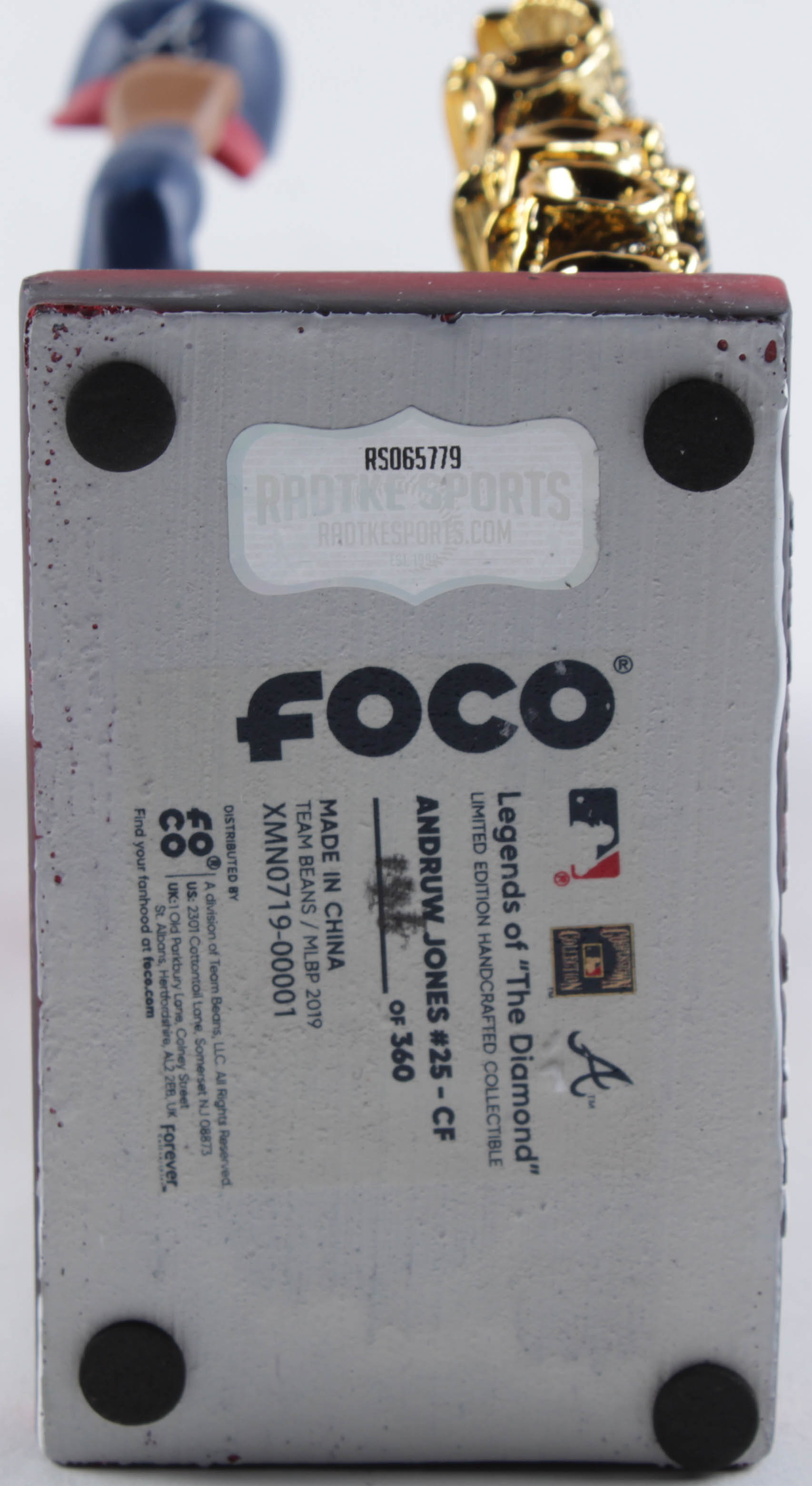 Cooperstown Collection Atlanta Braves Gold Glove bobblehead measures approximately 7" tall. Hand-signed by Andruw Jones.