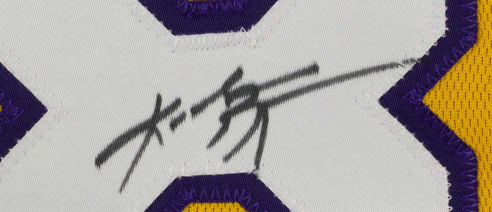 Nike on-court style jersey. Everything sewn on, size 46. Hand-signed by Kobe Bryant (D. 2020, Los Angeles Lakers, HOF).