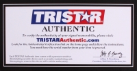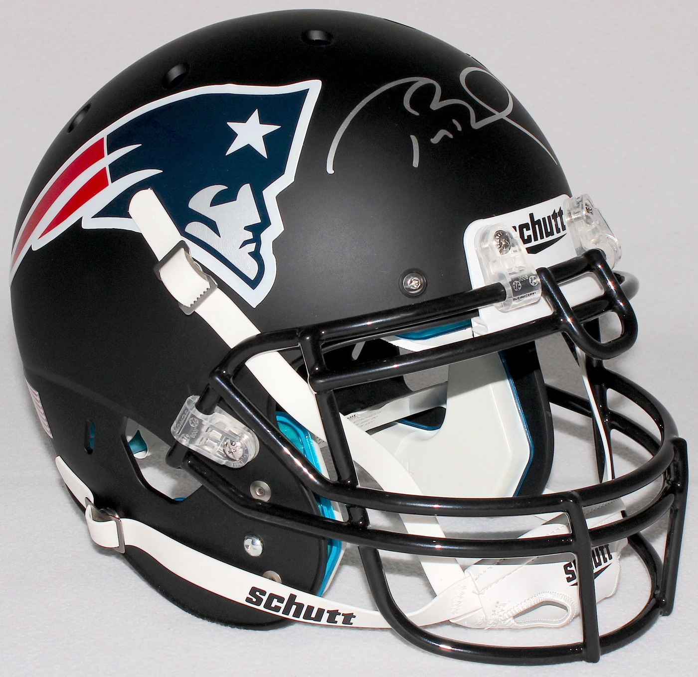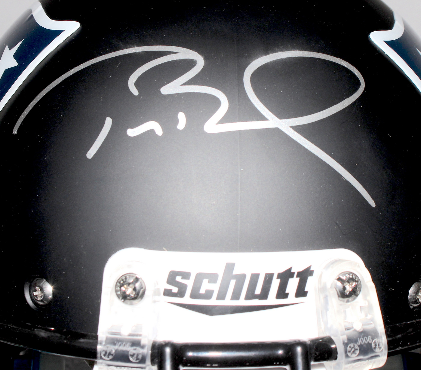 Schutt full-size authentic pro-line helmet hand-signed in silver paint pen by Tom Brady (Patriots). The autograph includes an official TriStar hologram and matching COA for authenticity purposes.