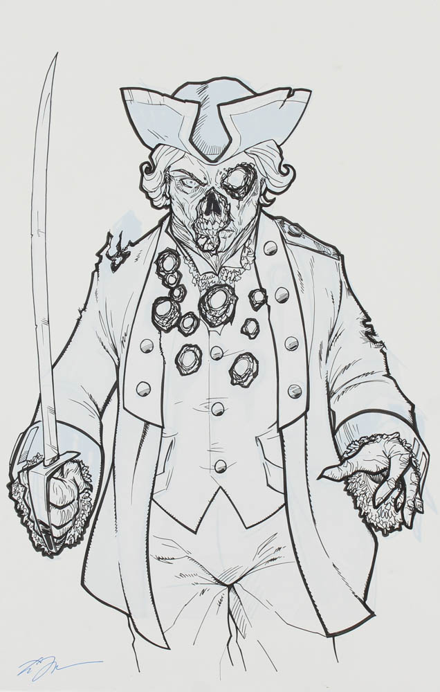 Tom Hodges - Shooting Range Target "Zombie Pirate" - Signed 11x17 ORIGINAL Artwork (PA COA)