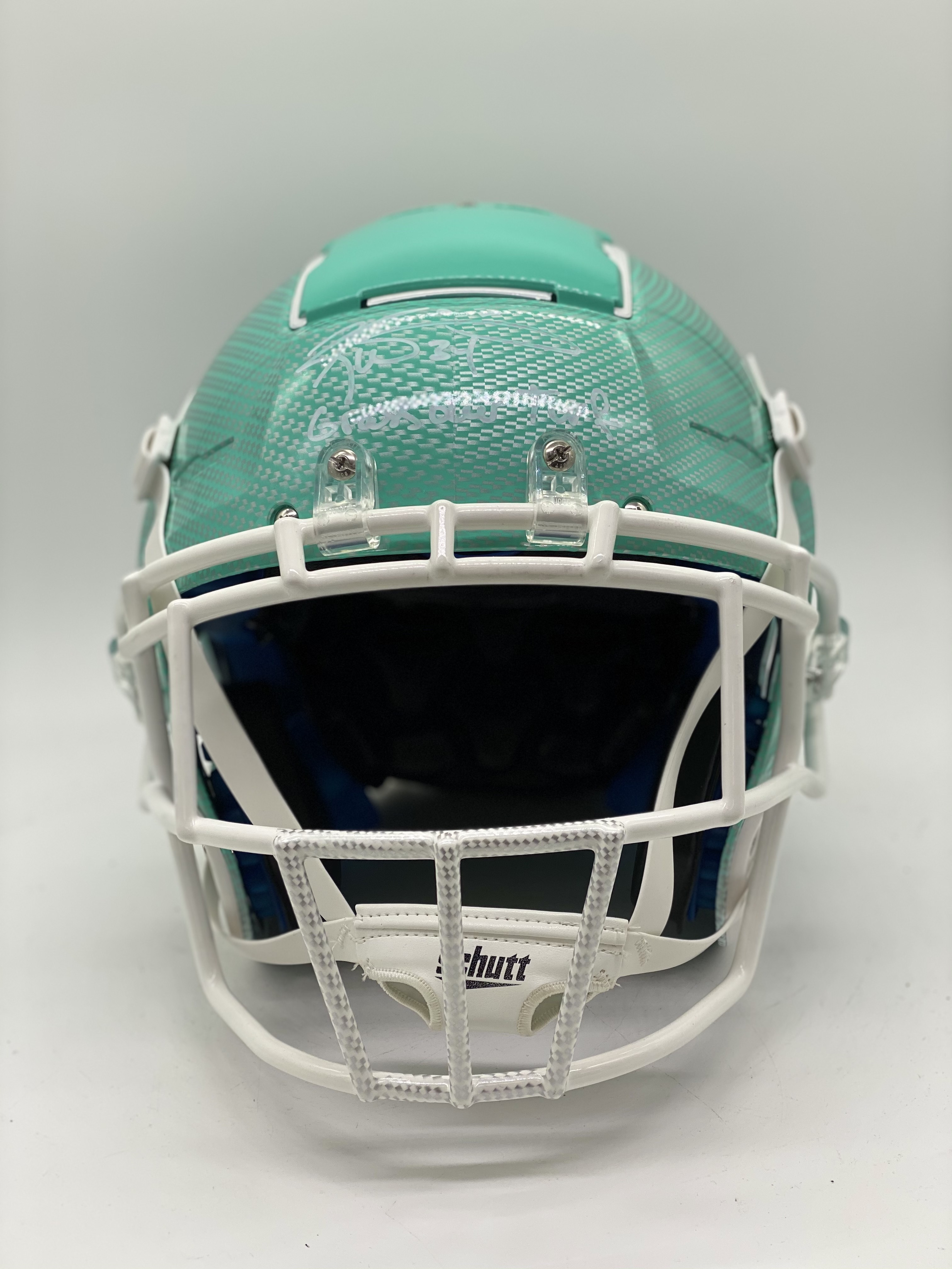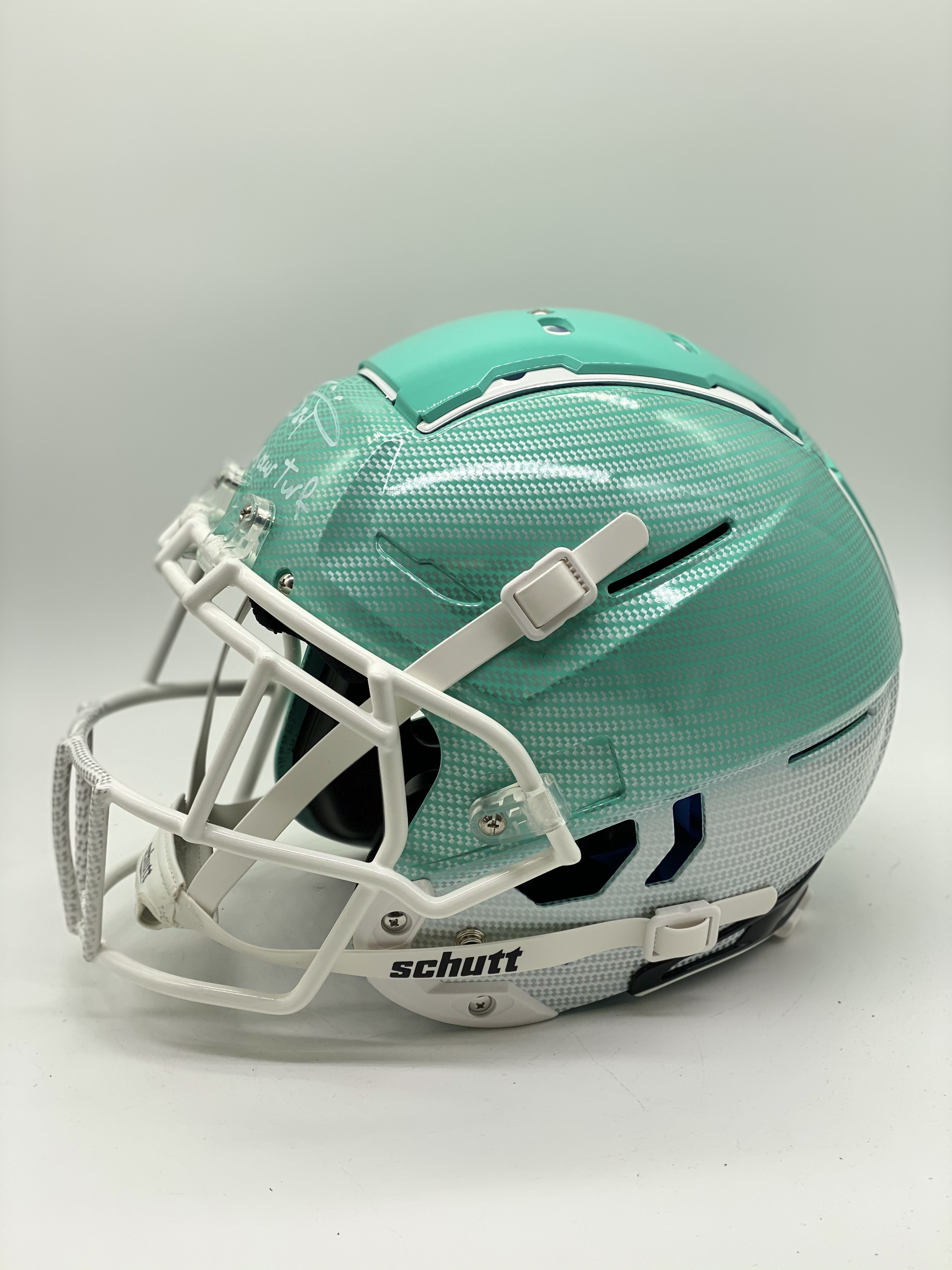 Schutt F7 full-size authentic on-field hydro-dipped F7 helmet. Hand-signed and inscribed by Ricky Williams. Please see images for details regarding the condition of the helmet.