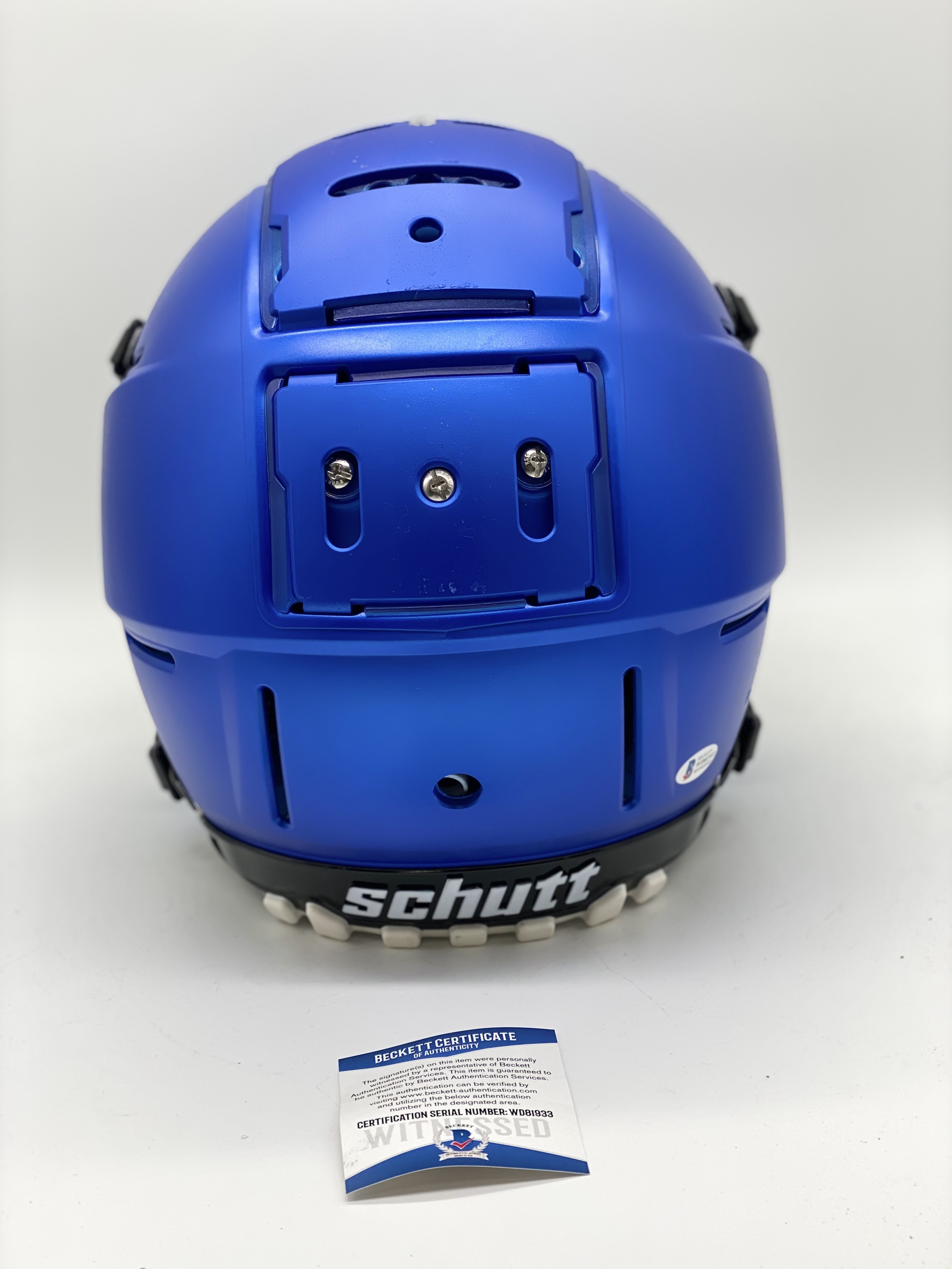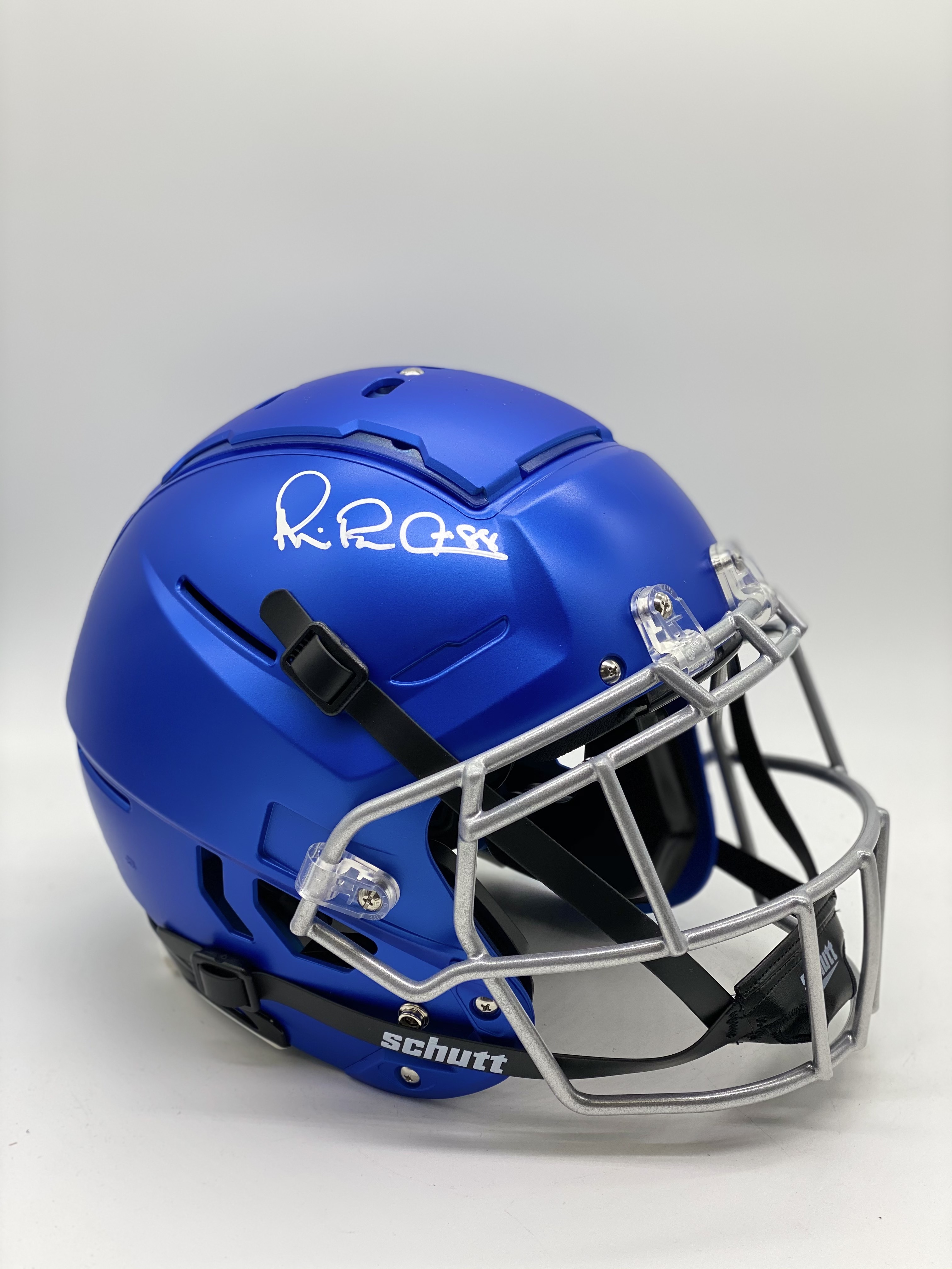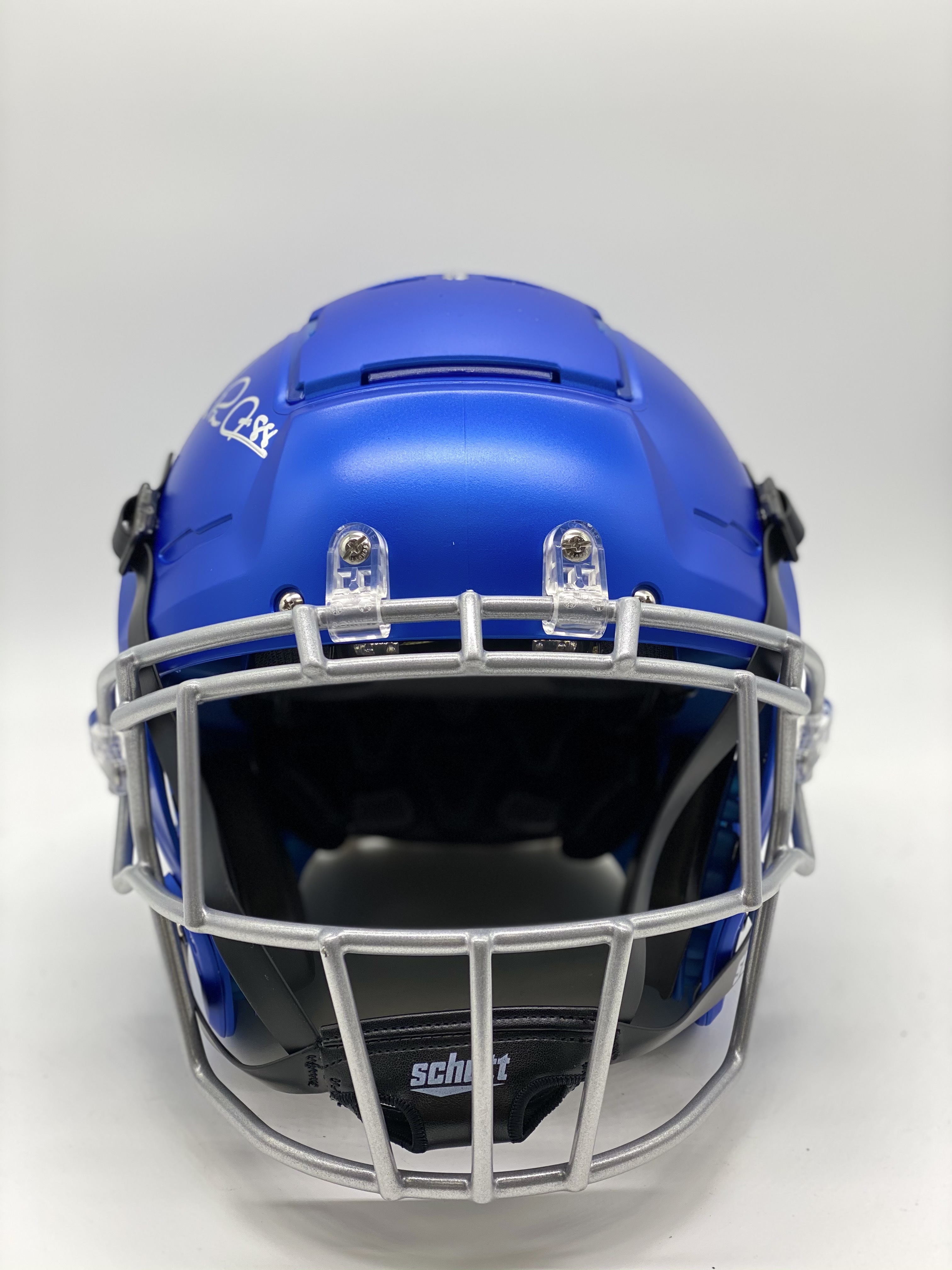 Schutt Full-Size Authentic On-Field Matte Blue F7 helmet. Hand-signed by Michael Irvin (HOF).