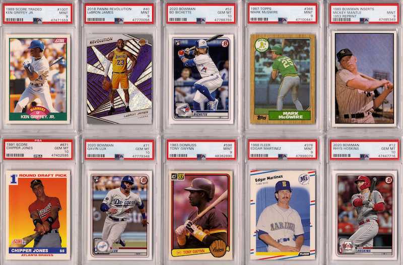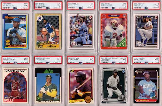 Michael Jordan, Ken Griffey Jr, Zion Williamson, Hank Aaron, Mickey Mantle, LeBron James, Aaron Judge, Jerry Rice, Babe Ruth, Tom Brady, Wayne Gretzky, Peyton Manning, Derek Jeter, Barry Bonds, Bo Jackson, Magic Johnson, Larry Bird, Willie Mays, Bill Russell, Kobe Bryant, Dan Marino, Barry Sanders, Aaron Rodgers, Patrick Mahomes II, Walter Payton, Scottie Pippen, Stephen Curry, Troy Aikman, Rob Gronkowski, Bill Bradley, Deion Sanders, John Elway, Reggie White, Franco Harris, Junior Seau, Steve Young, Kurt Warner, Rick Barry, Steve McNair, Terrell Davis, Kareem Abdul-Jabbar, Jerome Bettis, Marvin Harrison, LeSean McCoy, Drew Bledsoe, Marcus Allen, Dirk Nowitzki, Rickey Henderson, Nolan Ryan, Peyton Manning, Joe Namath, Shaquille O’Neal and more…
