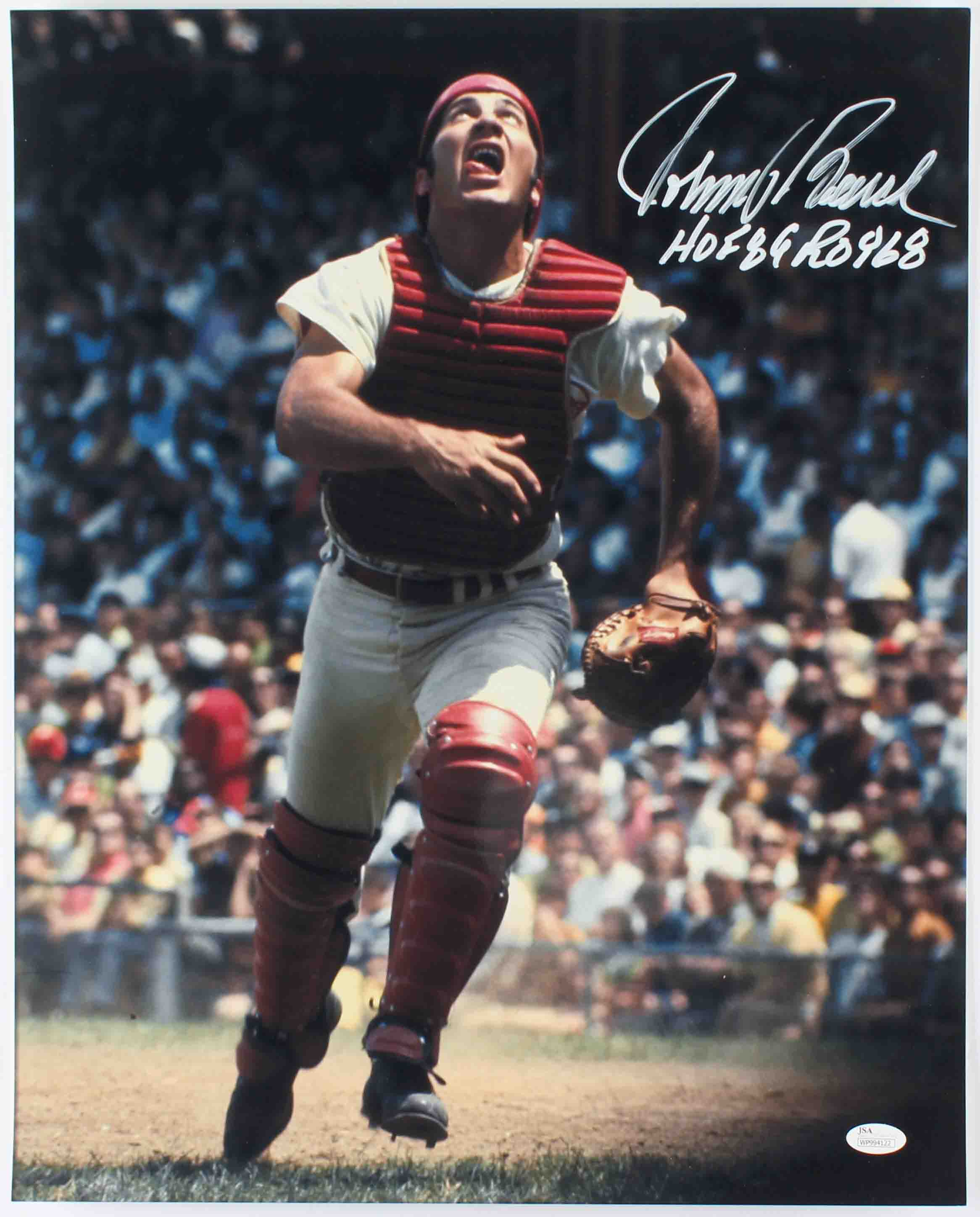 Photo measures 16" x 20" in size and has been hand-signed by Johnny Bench (Cincinnati Reds, HOF)