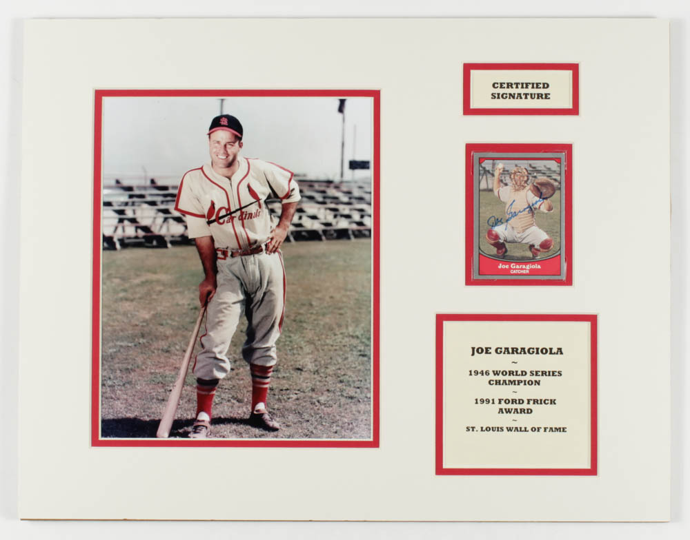 Joe Garagiola Sr. Signed Cardinals 14x18 Custom Matted 1990 Pacific Legends #24 Display (JSA COA & SOP Hologram)