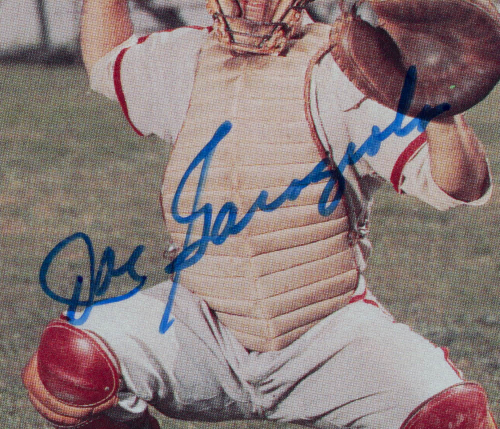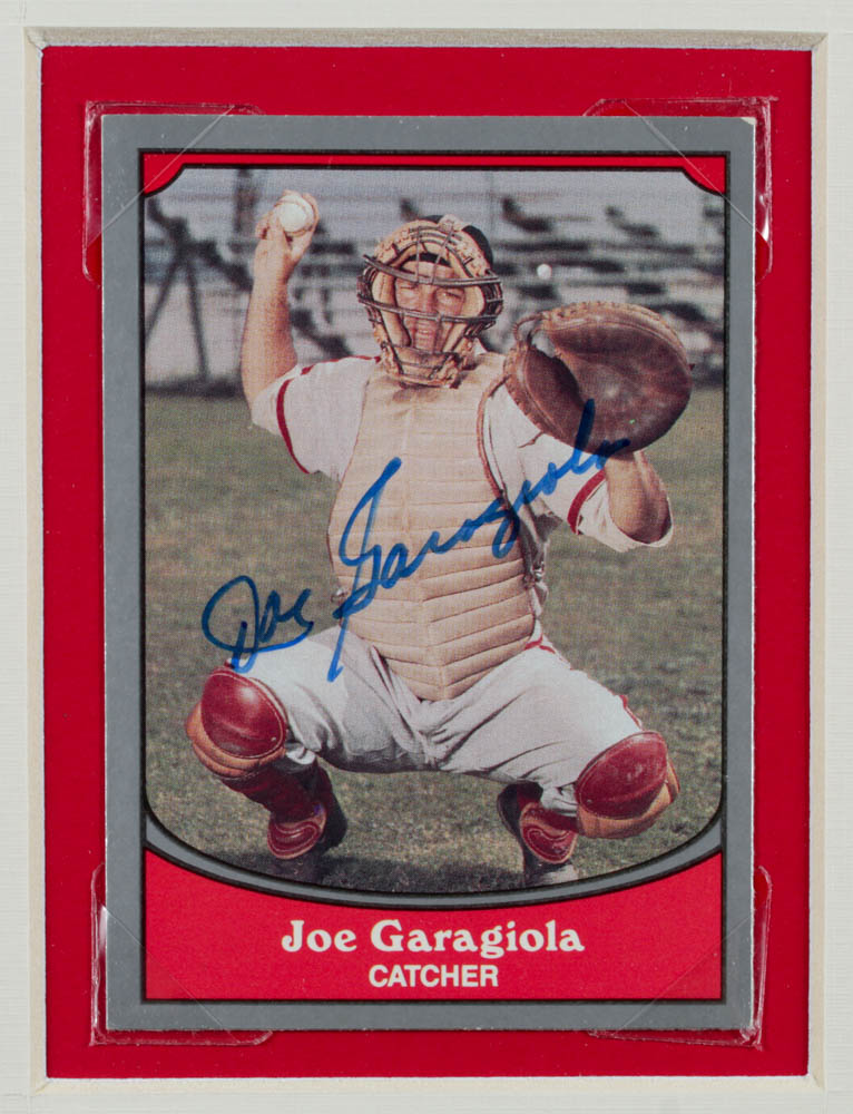 Custom matted display measures approximately 14" x 18" in size and features a 1990 Pacific Legends #24 card that measures approximately 3" x 4" in size and has been hand-signed by Joe Garagiola Sr. (D. 2016, St Louis Cardinals). Display also includes a photo that measures approximately 8" x 10" in size of Joe Garagiola Sr.