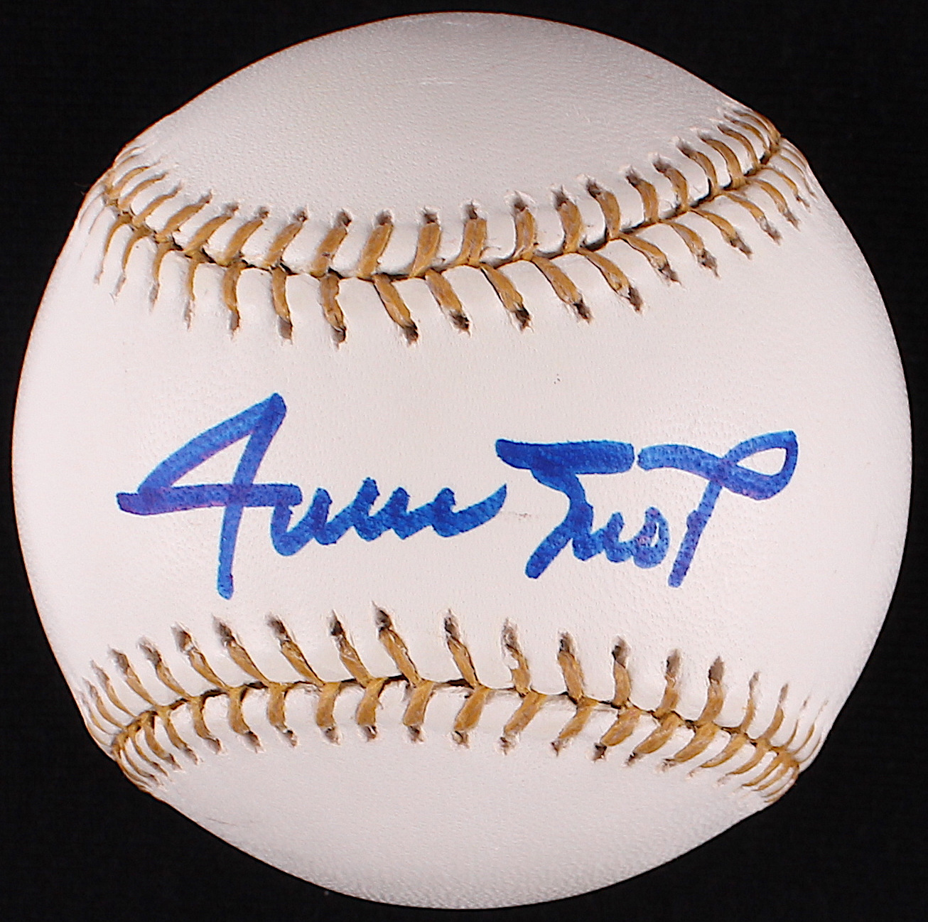 Rawlings Official Golden Glove Award Baseball. Hand-signed in blue felt-tip pen by Willie Mays (Giants HOF). The autograph includes a James Spence Authentication (JSA) Auction House LOA copy for authenticity purposes.