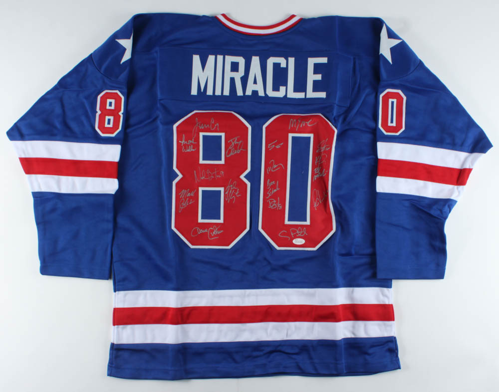 Hockey Jersey Team-Signed by (17) with Mike Eruzione, Jim Craig, Neal Broten, Mark Johnson, Dave Christian (JSA COA)