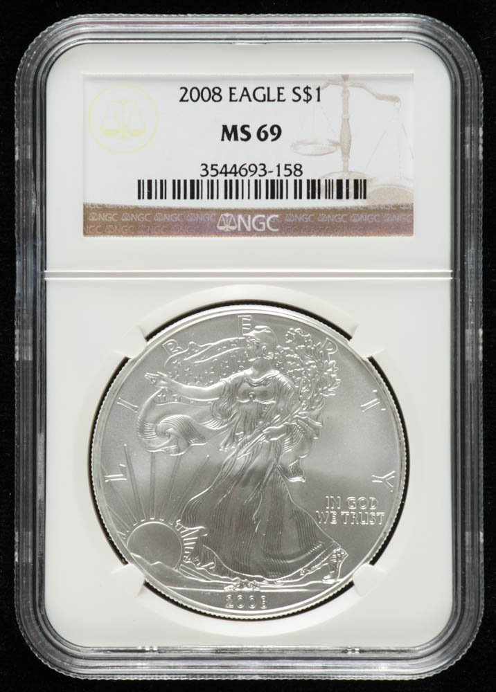 2008 American Silver Eagle $1 One Dollar Coin (NGC MS 69)