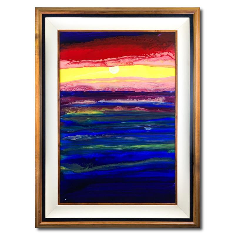 "Sun Lite Waters" is a framed original painting on board by Wyland. Hand signed by the artist, this piece comes with a letter of authenticity. The frame is imperfect with moderate wear. Measures approx. 45" x 33" (framed), 36" x 24" (image).