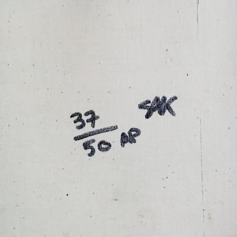 "Half Grant" is limited edition hand pulled silkscreen unique mixed media on canvas by Andy Warhol protege Steve Kaufman (1960-2010). This piece is numbered and hand signed inverso and includes a letter of authenticity. As is common with Kaufman's works, this piece may have perceived minor flaws, but is in overall good condition. Measures approximately 17" x 22.5" before cropping.