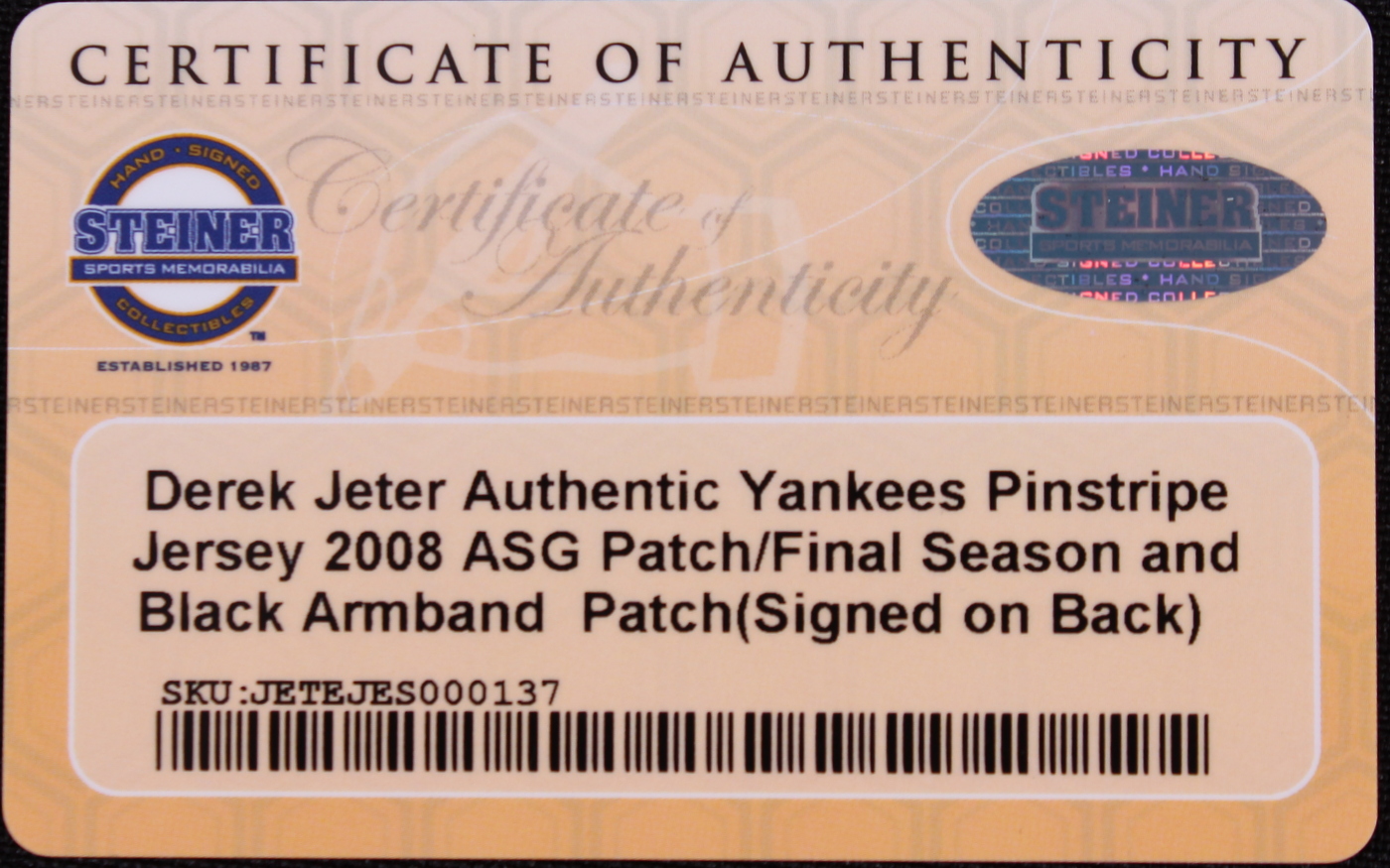 Derek Jeter Signed Yankees Authentic Majestic Jersey with 2008 All-Star Game Patch & Final Season Patch (Steiner COA & MLB Hologram)