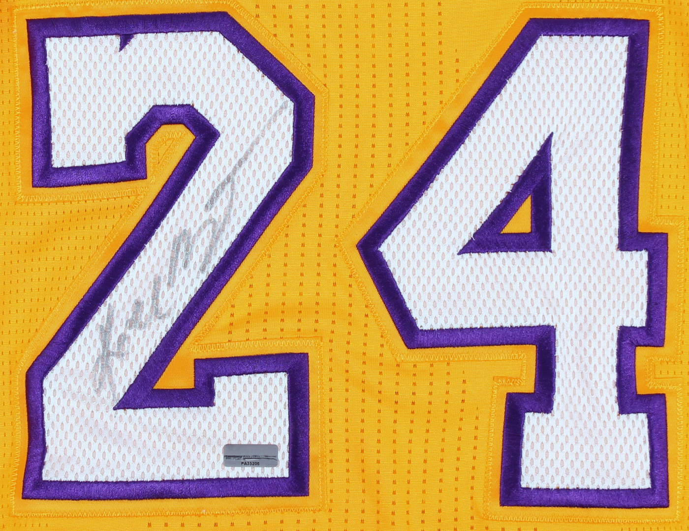 Adidas on-court jersey. Everything sewn on, size XL. Hand-signed in silver paint pen by Kobe Bryant.