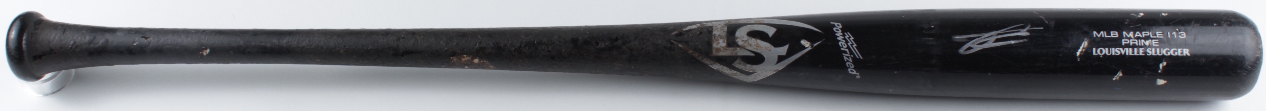 Rawlings Big Stick Baseball bat. Hand-signed by Julio Rodriguez (Seattle Mariners). Please note, the bat has been game-used and cracked by an unknown player.