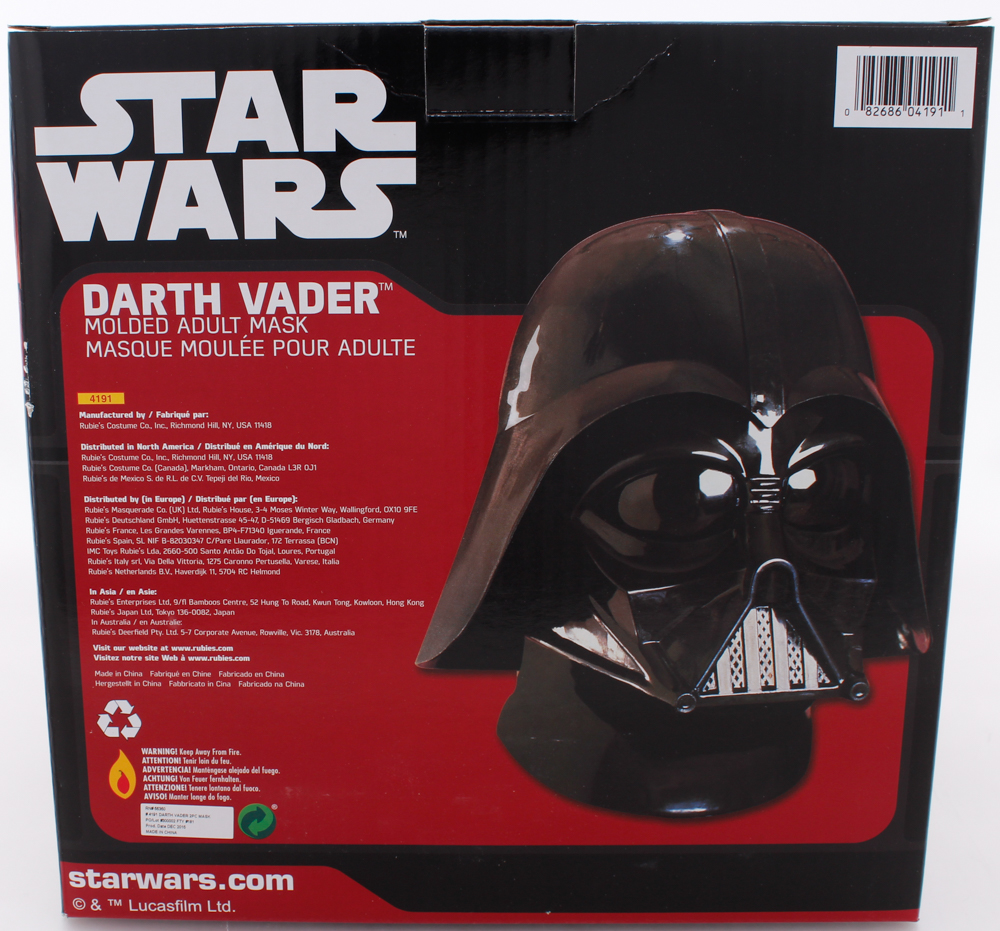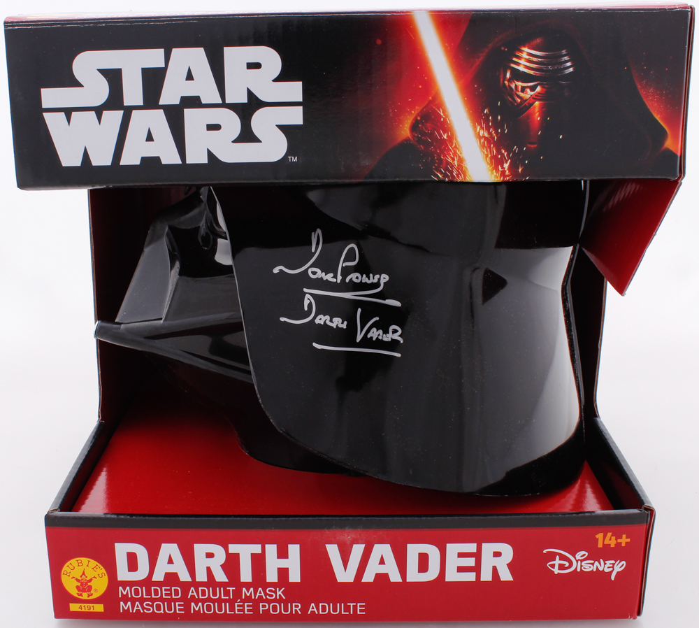 Rubie's Star Wars Darth Vader full-size replica helmet. Hand-signed and inscribed by David Prowse (D. 2020). Comes in box as shown.