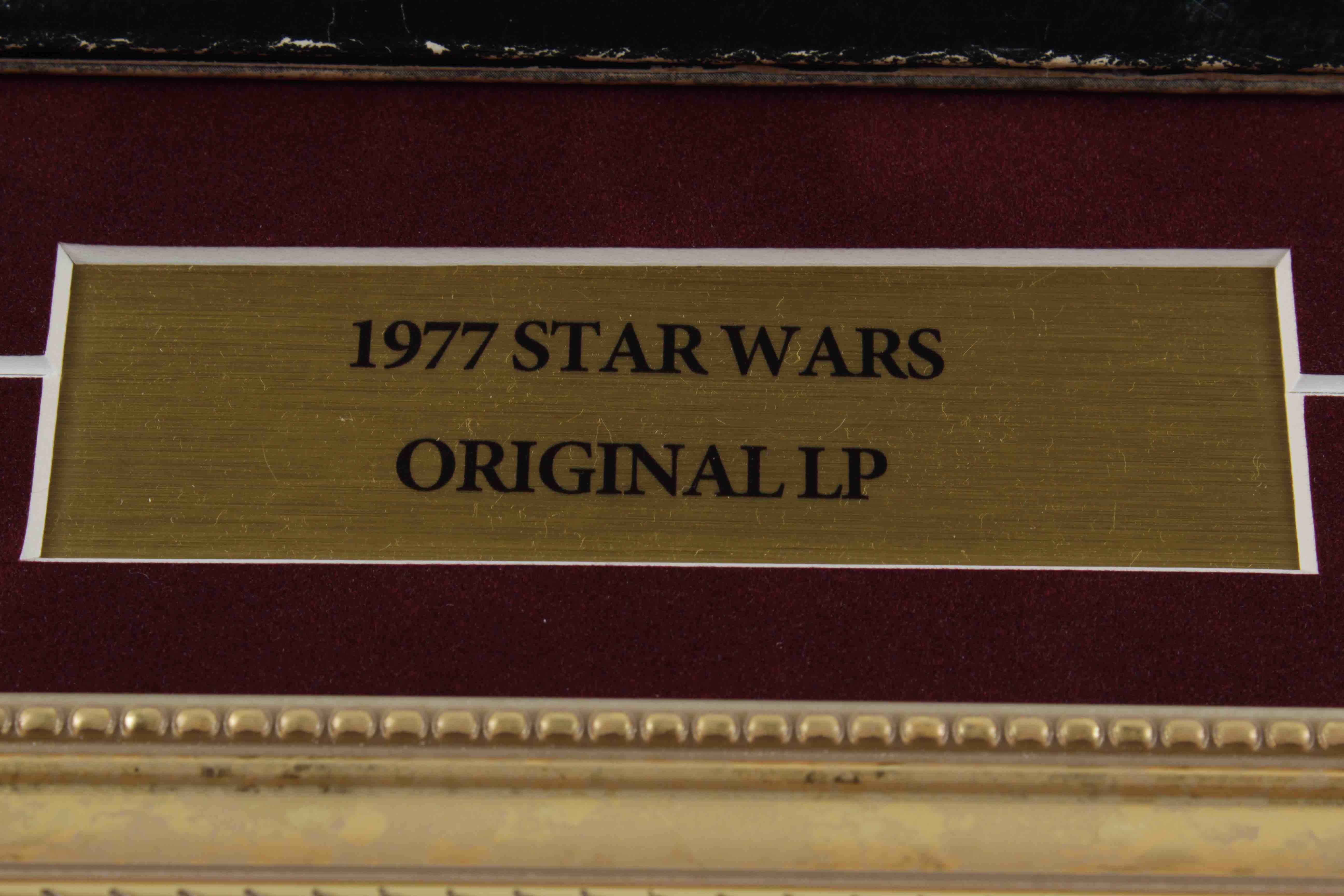 Custom frame measures 18" x 22" in size and features a vintage 1977 "Star Wars" Vinyl Soundtrack record album. Please note, the vinyl record is included.