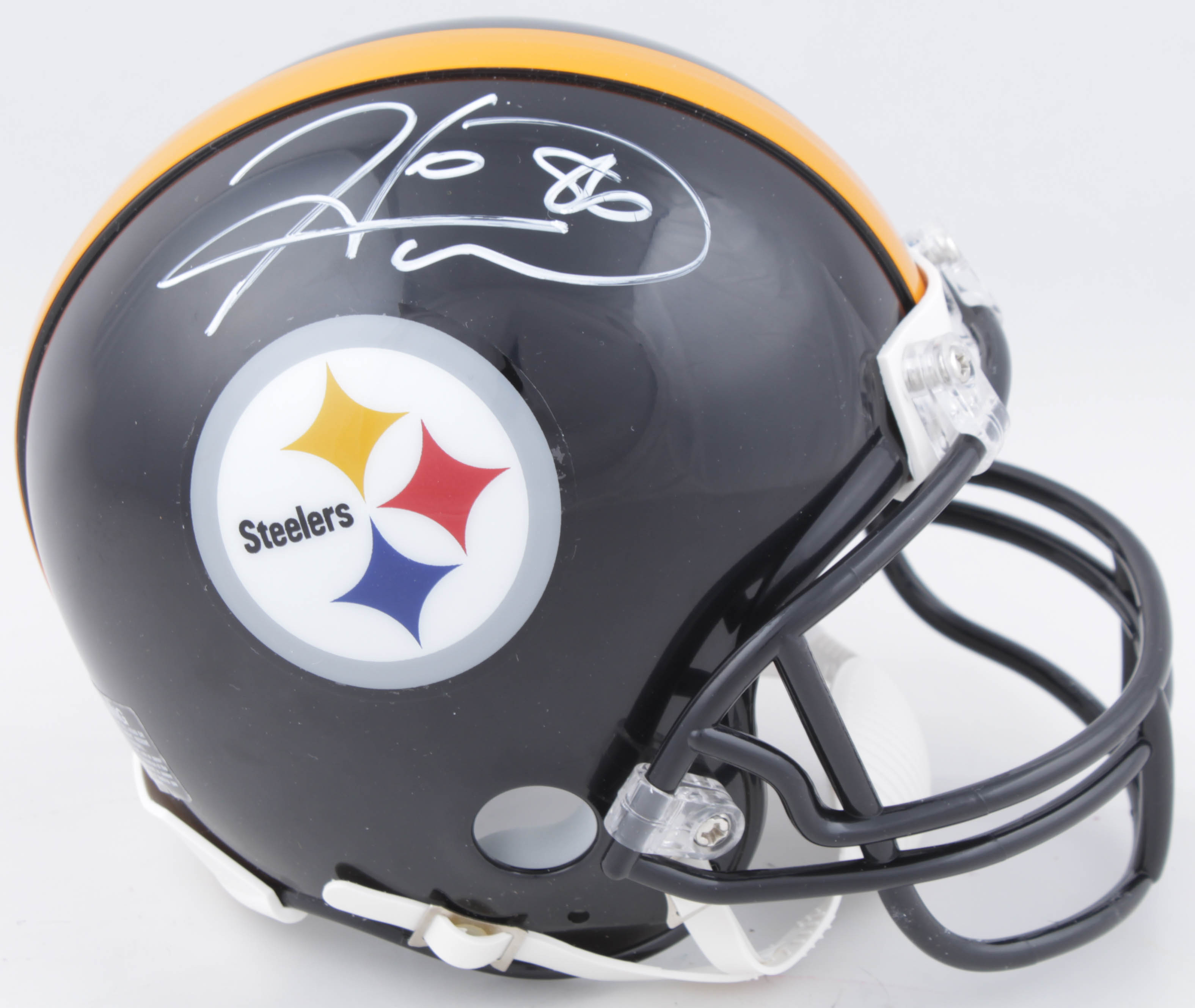 Riddell Pittsburgh Steelers mini helmet has been hand-signed by Hines Ward.