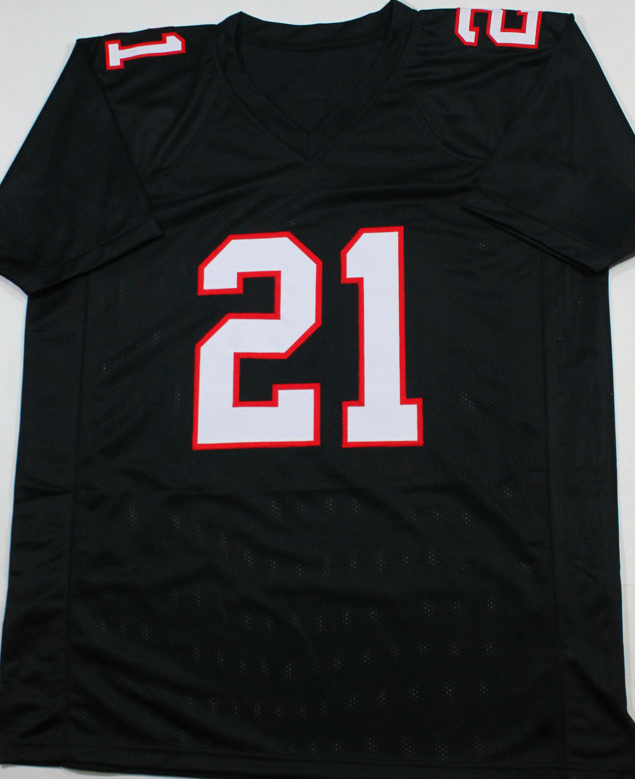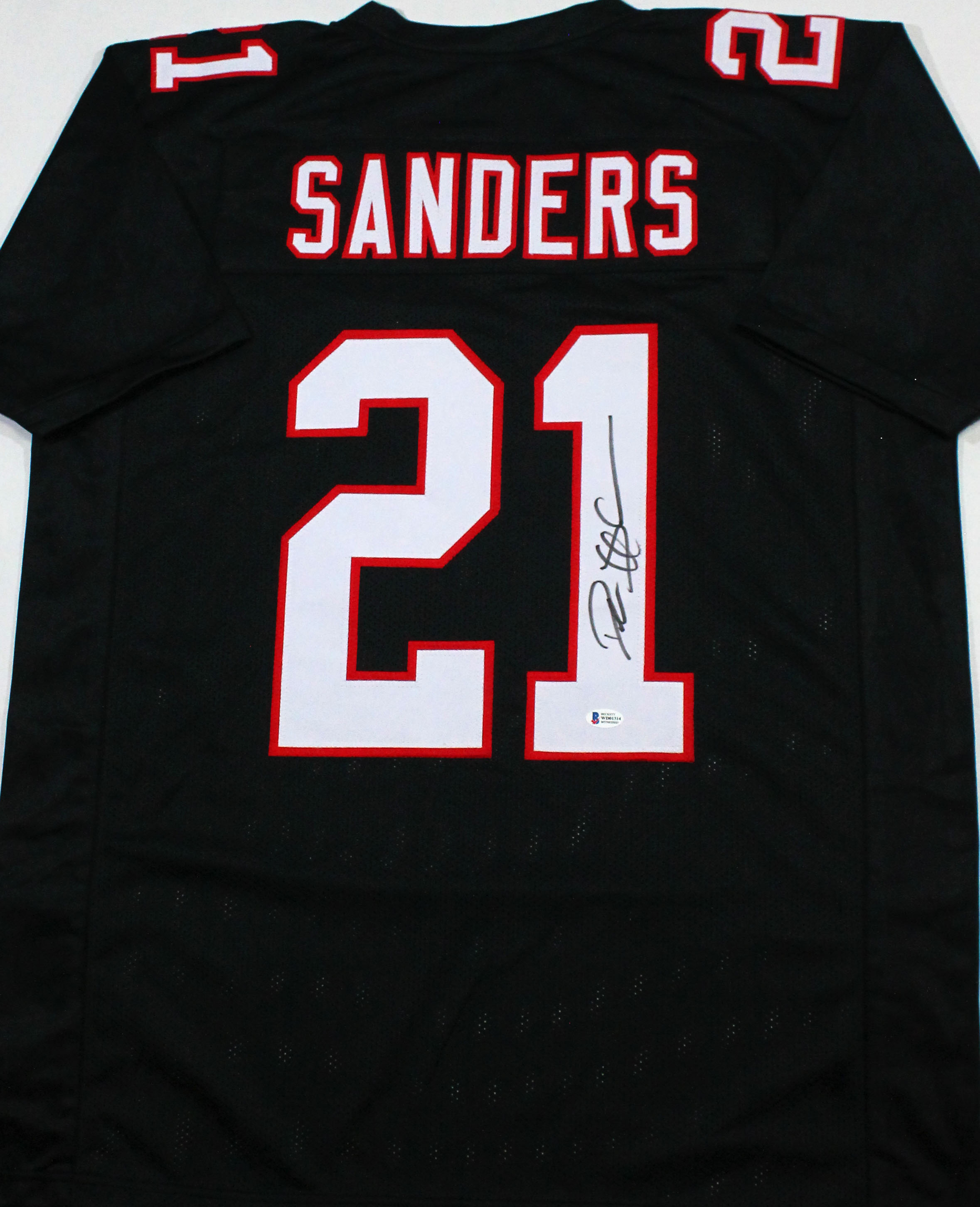 Custom on-field style jersey. Everything is sewn on, size XL. Hand-signed by Deion Sanders.