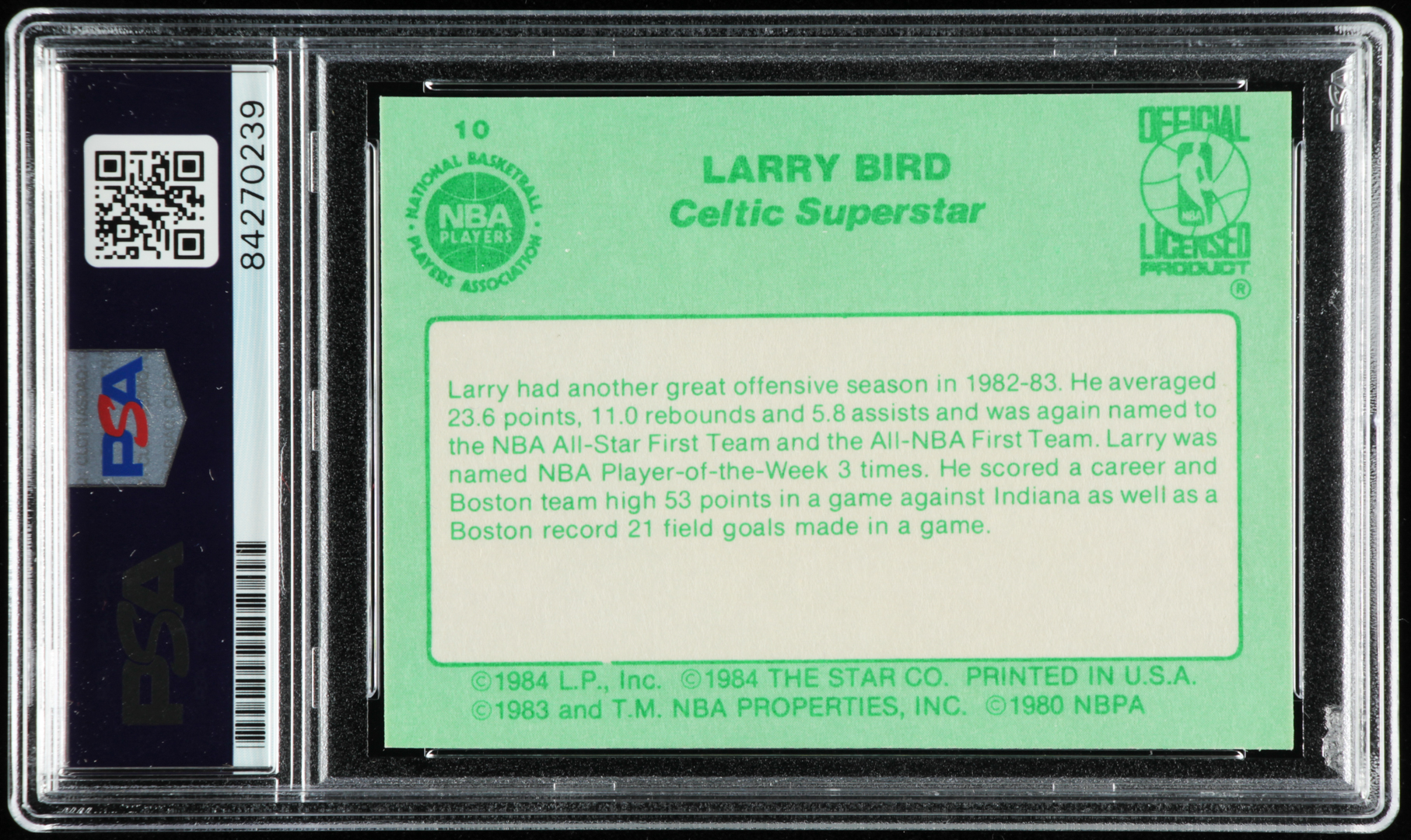 Larry Bird Signed 1984 Star #10 The 1982-83 Season (PSA Encapsulated)
