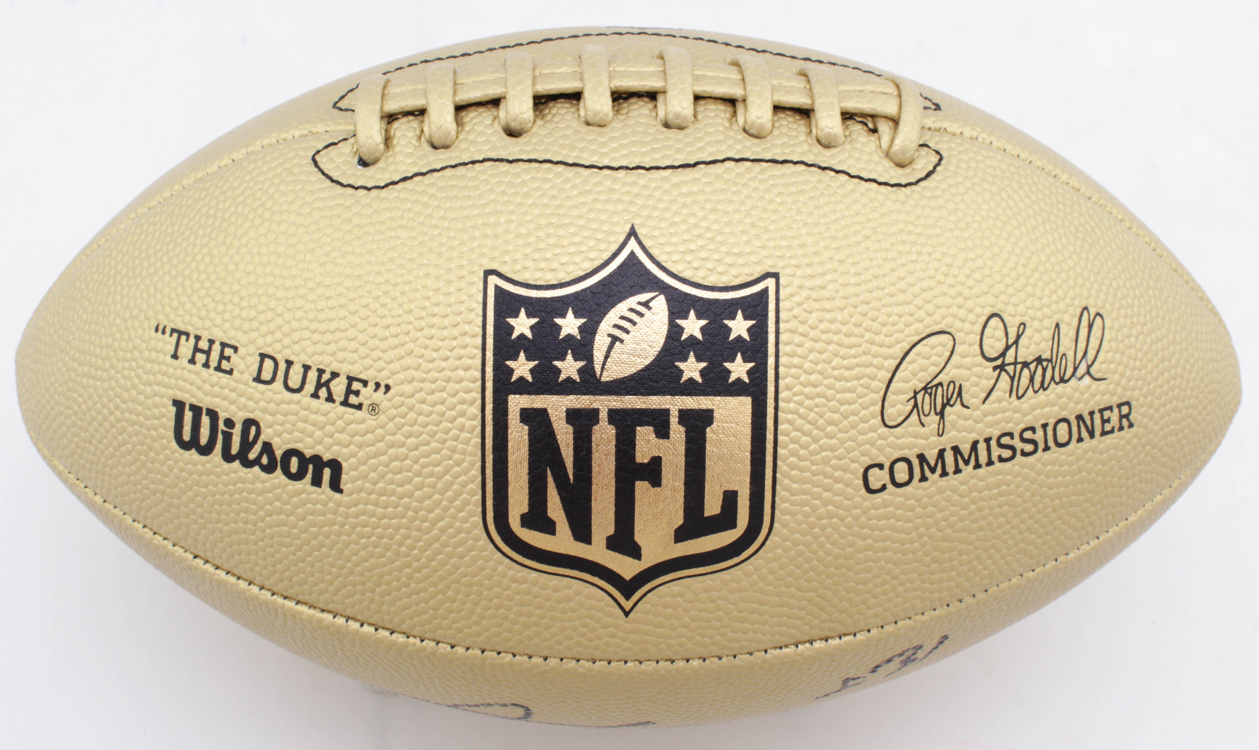 Wilson gold metallic "The Duke" NFL Game Replica Football. Hand-signed by Jamal Lewis (Baltimore Ravens).