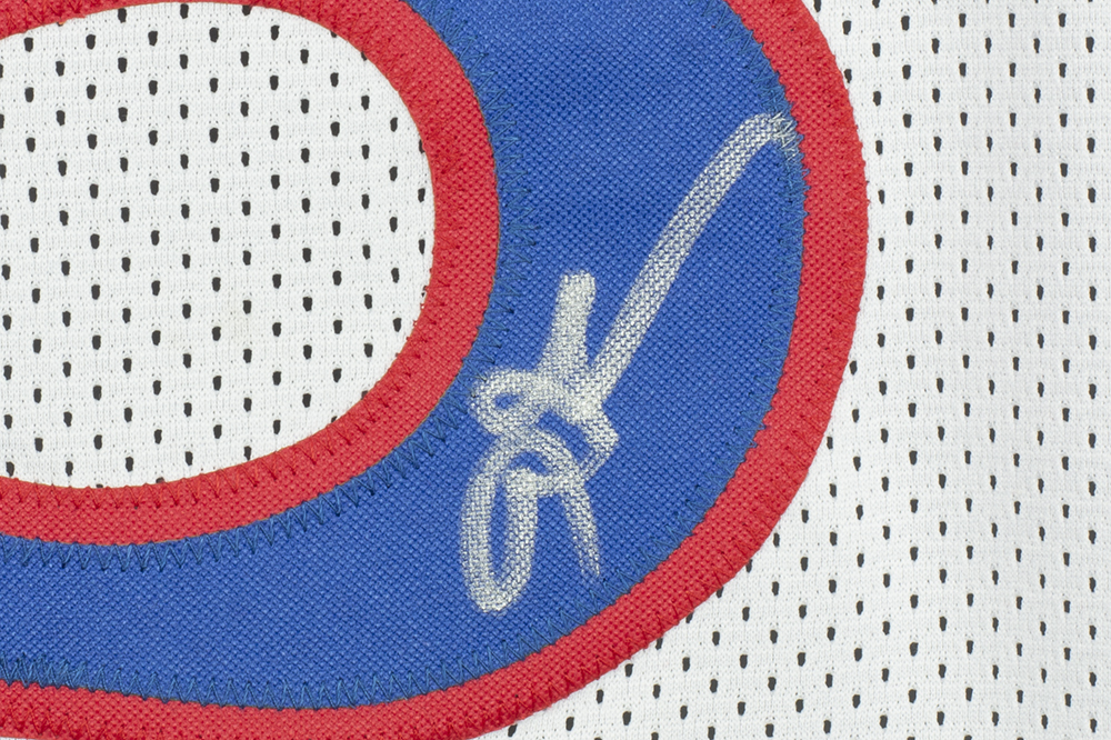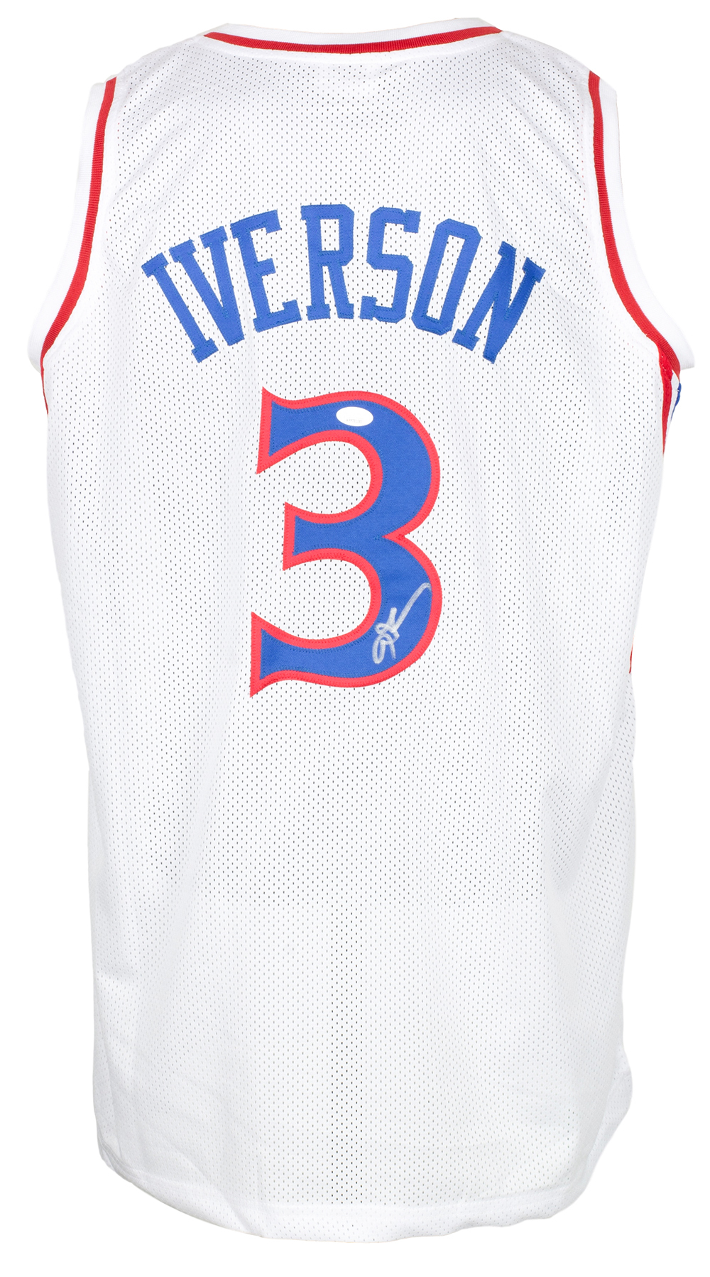 Custom on-court style jersey. Everything is sewn on, size XL. Has been hand-signed by Allen Iverson (HOF).