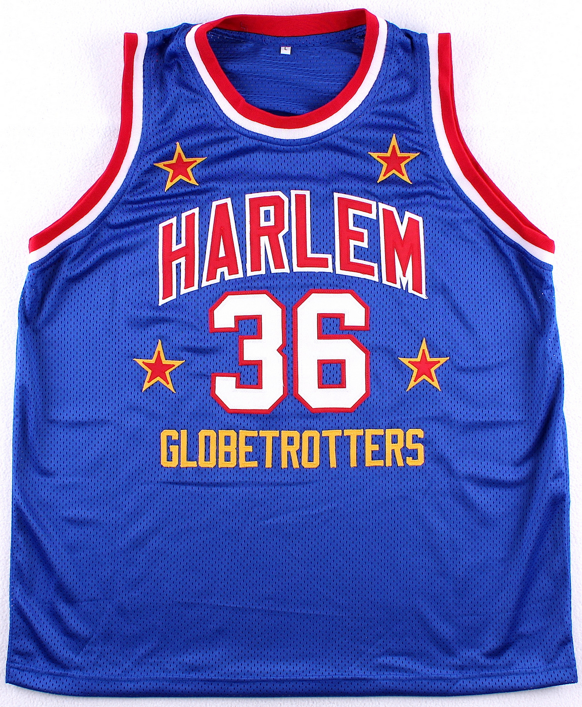 Custom on-court style jersey. Everything sewn on, size L. Hand-signed and inscribed in black felt tip pen by Meadowlark Lemon (HOF, D. 2015). The autograph includes a James Spence Authentication hologram and matching COA for authenticity purposes. The signing of this item was witnessed by JSA.