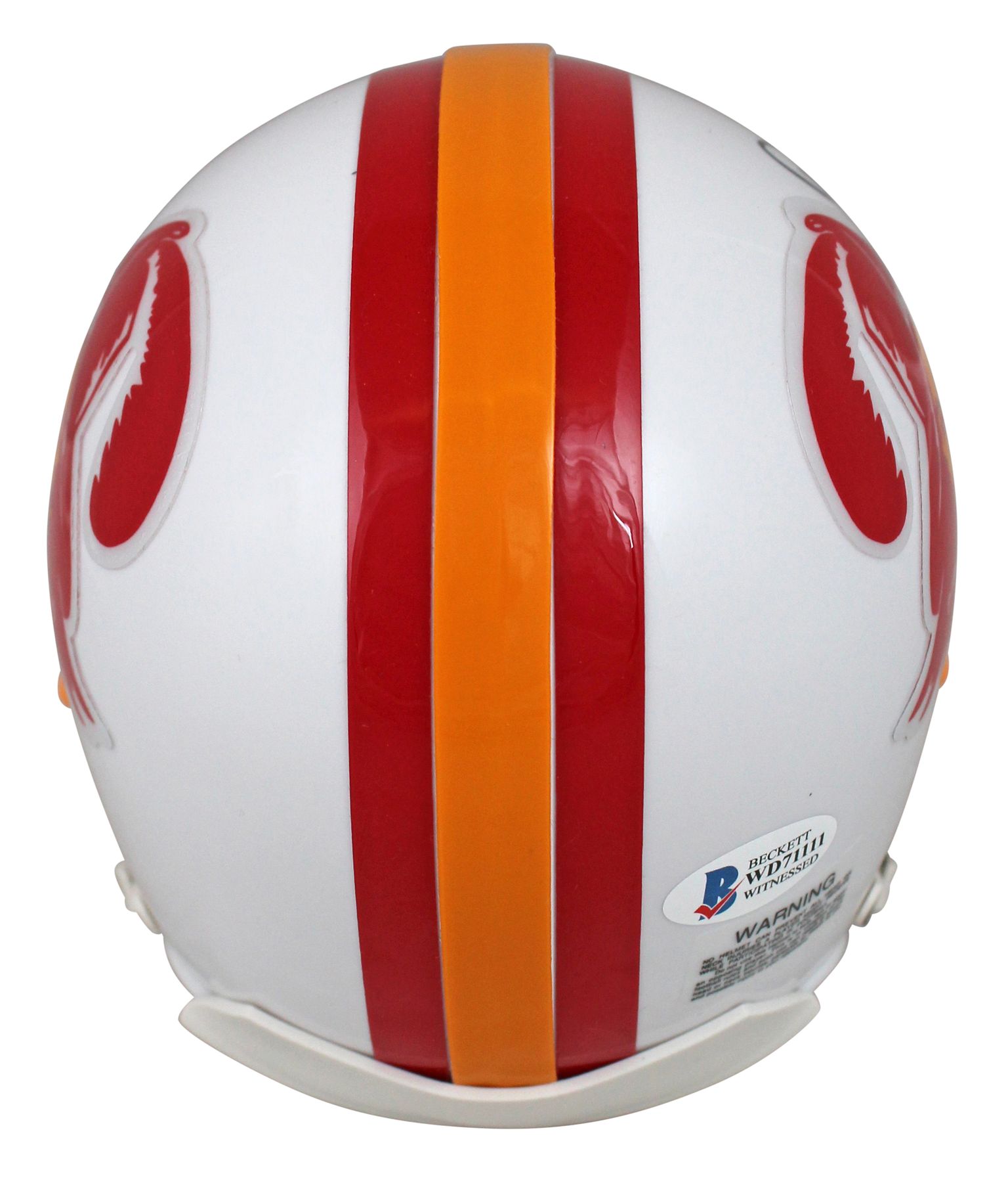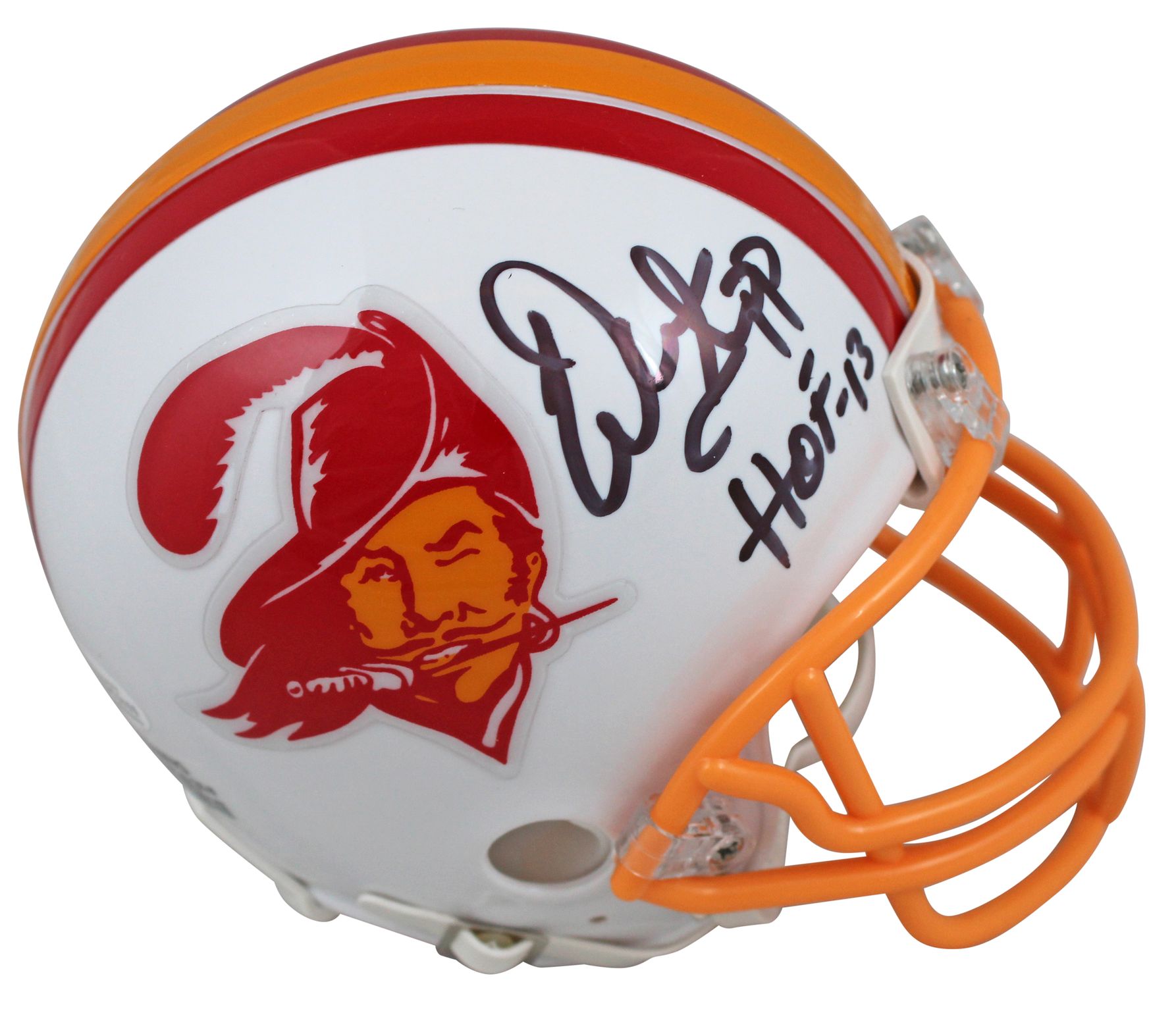 Riddell Tampa Bay Buccaneers Throwback mini-helmet. Hand-signed and inscribed by Warren Sapp (HOF).