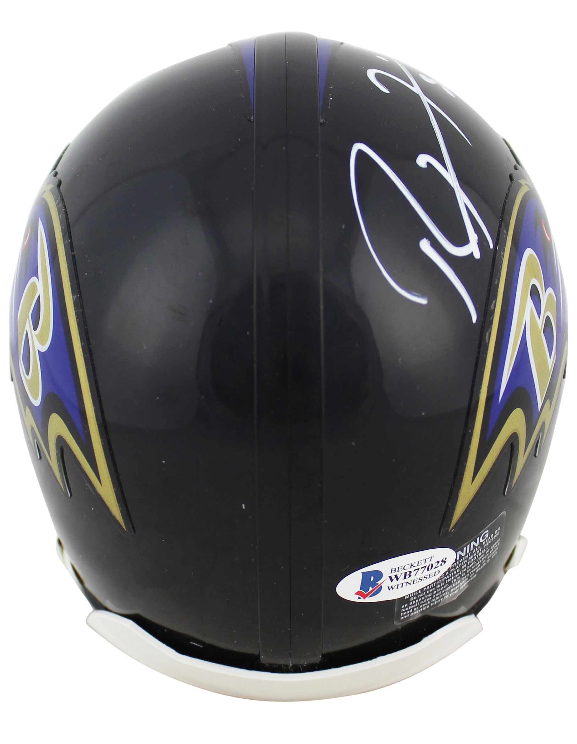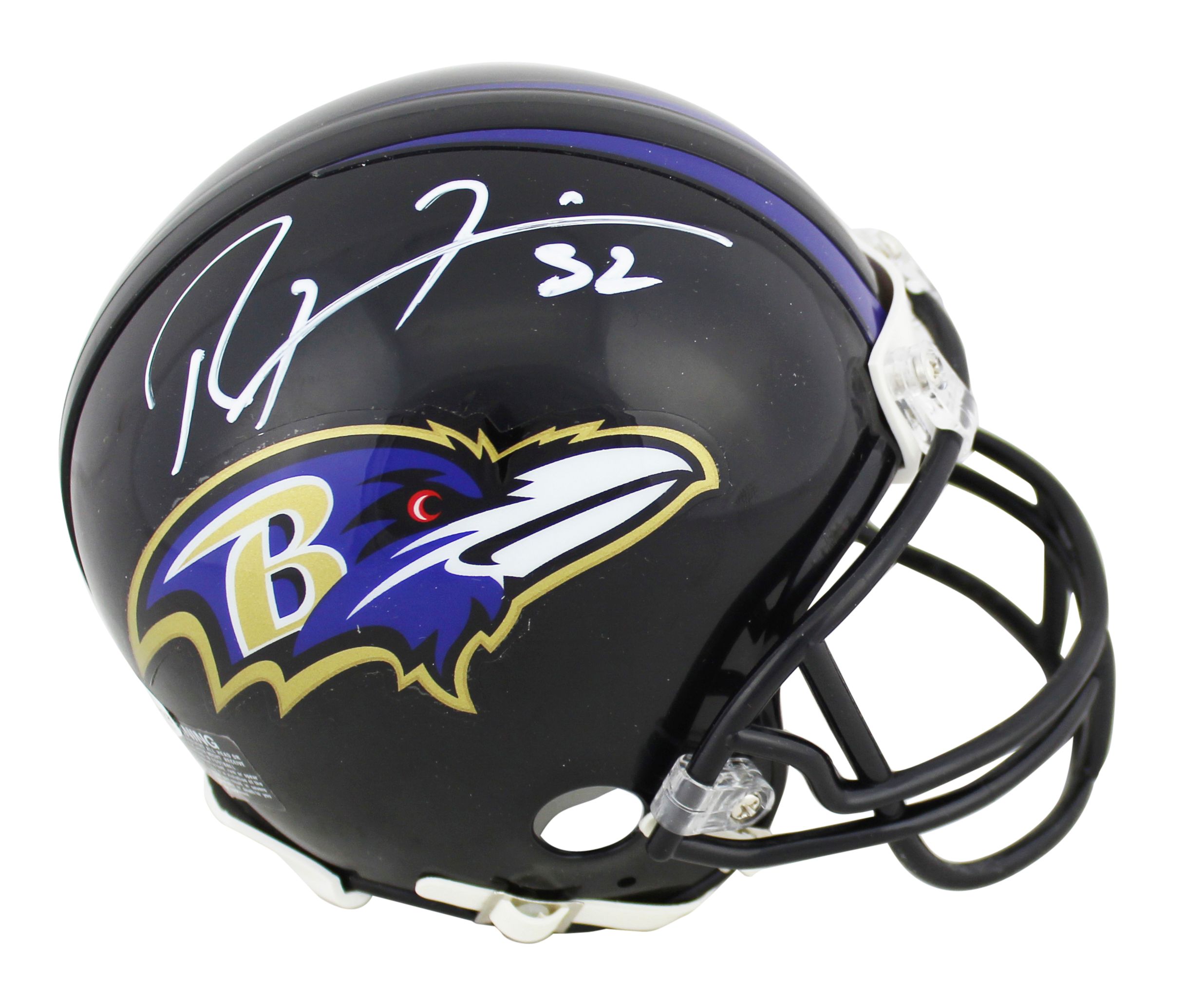Riddell Baltimore Ravens mini-helmet. Has been hand-signed by Ray Lewis (HOF).