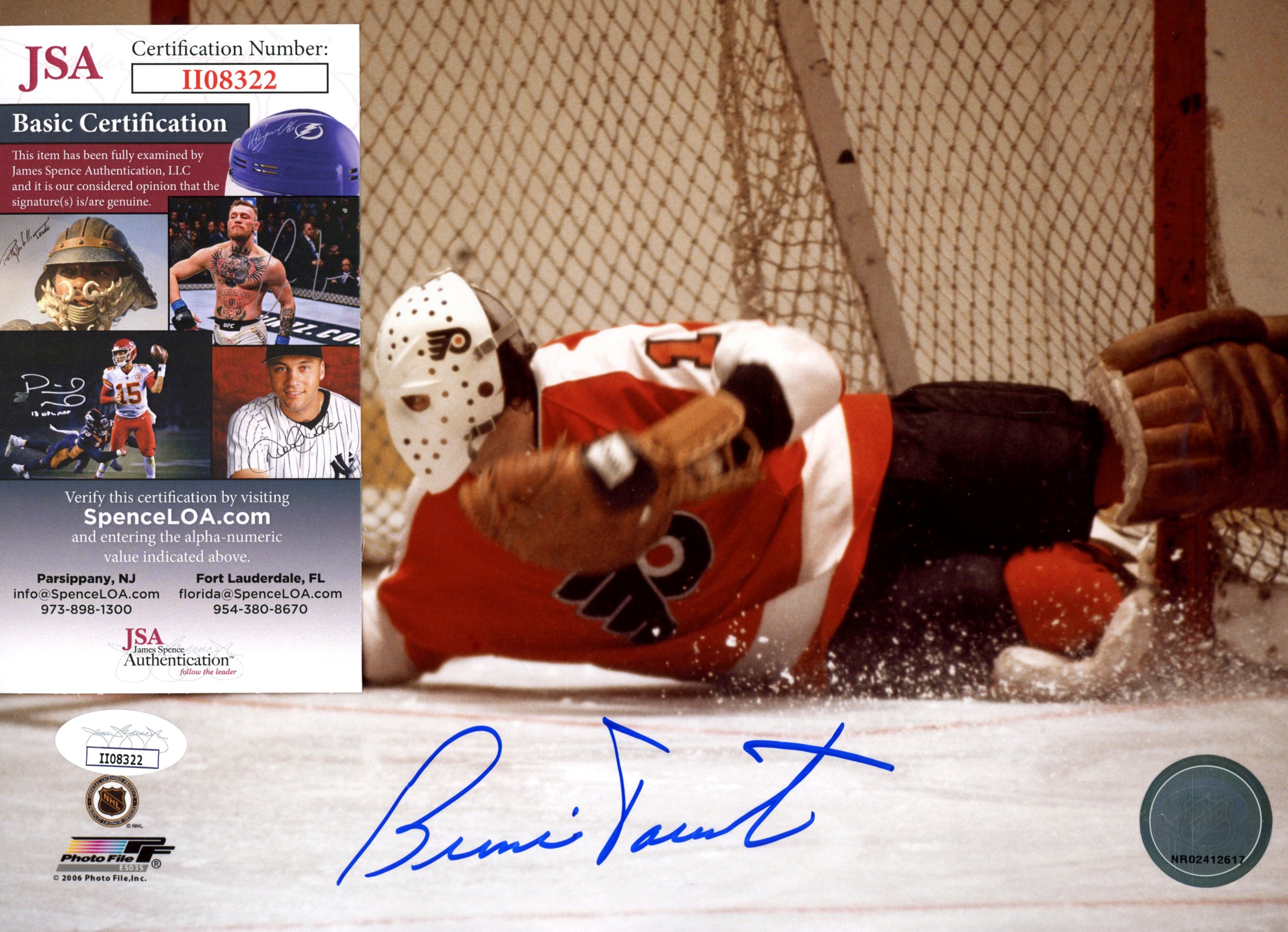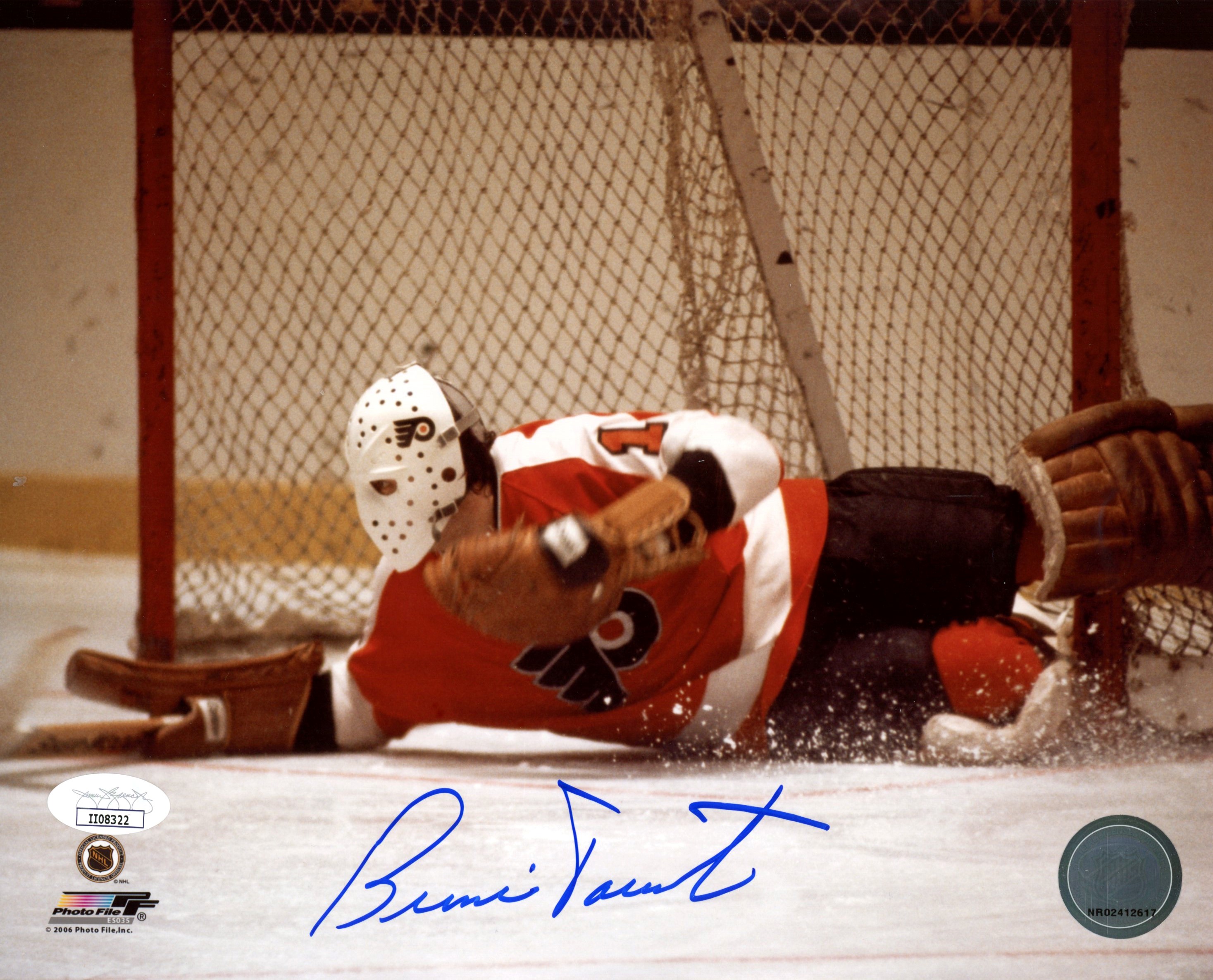 Photo measures 8" x 10" in size and has been hand-signed by Bernie Parent (Philadelphia Flyers, HOF).
